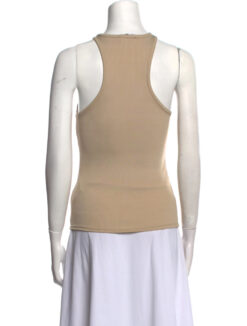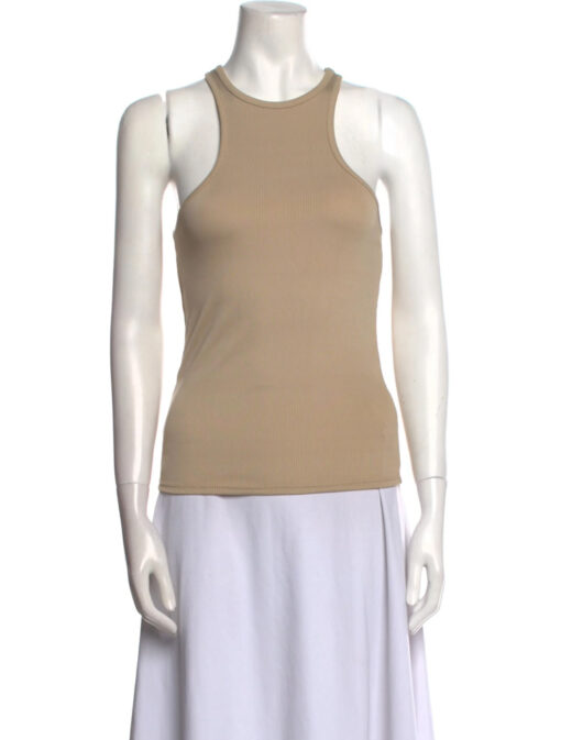 Anine Bing Women’s Eva Beige Ribbed High Neck Tank Top Blouse Small
