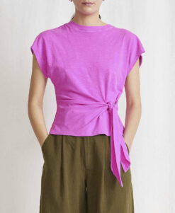 - Style: Nina Pink Cotton Cinched Shirt Top Blouse