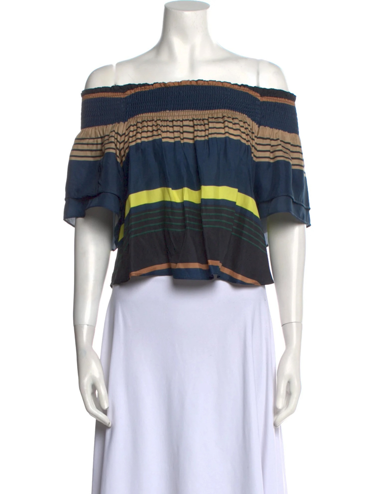 - Style: Striped Satin Off Shoulder Top Blouse