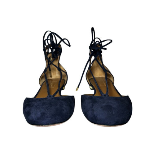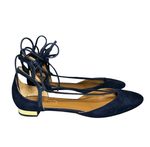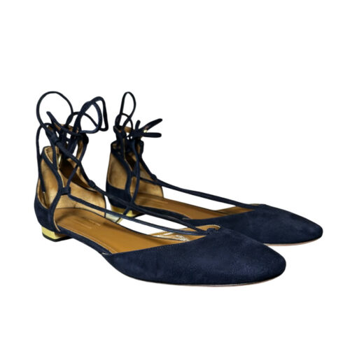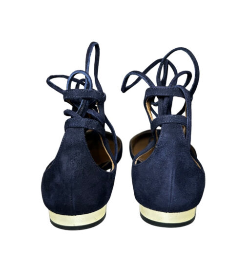 - Style: Navy Blue Suede Lace Up Ankle Strap Flats Gold Heels