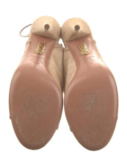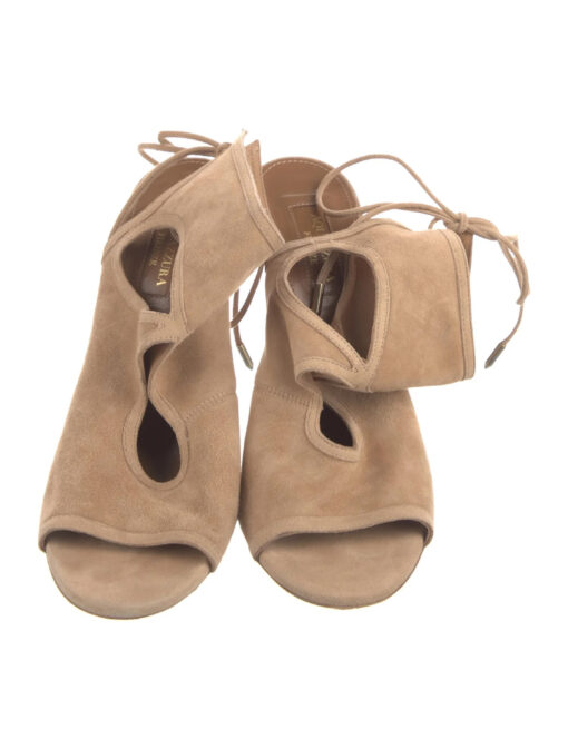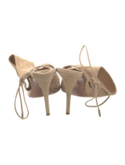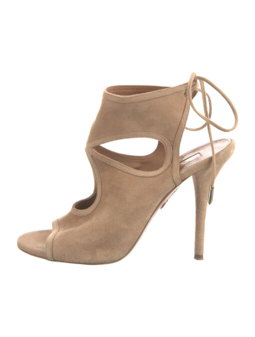 - Style: Sexy Thing Beige Suede Cutout Ankle Wrap Heels Sandals