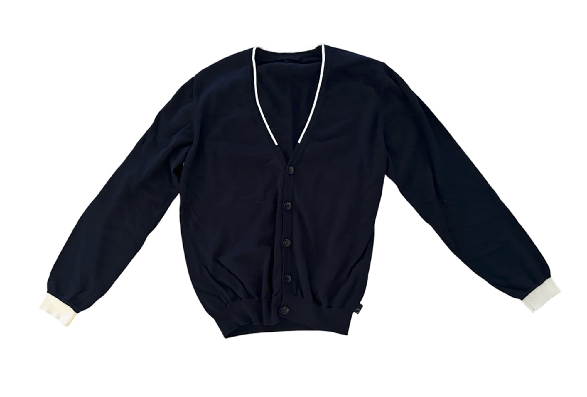- Style: Men’s Navy Cotton Knit V-Neck Cardigan Sweater