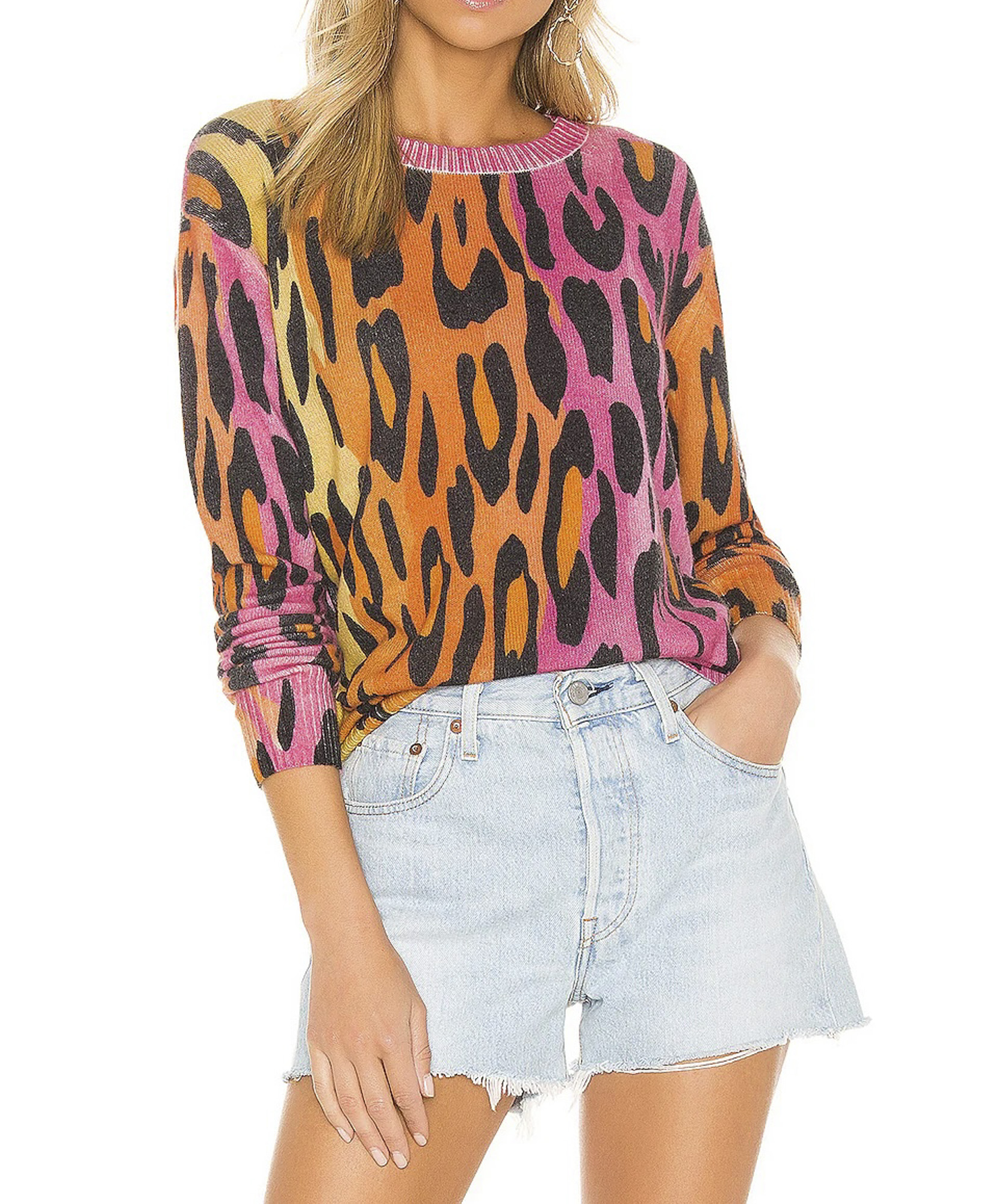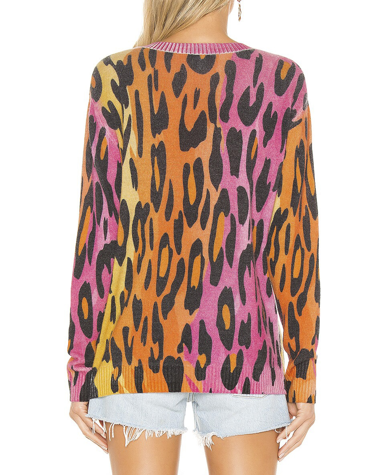 - Style: 100% Cashmere Printed Ombre Leopard Crew Neck Sweater