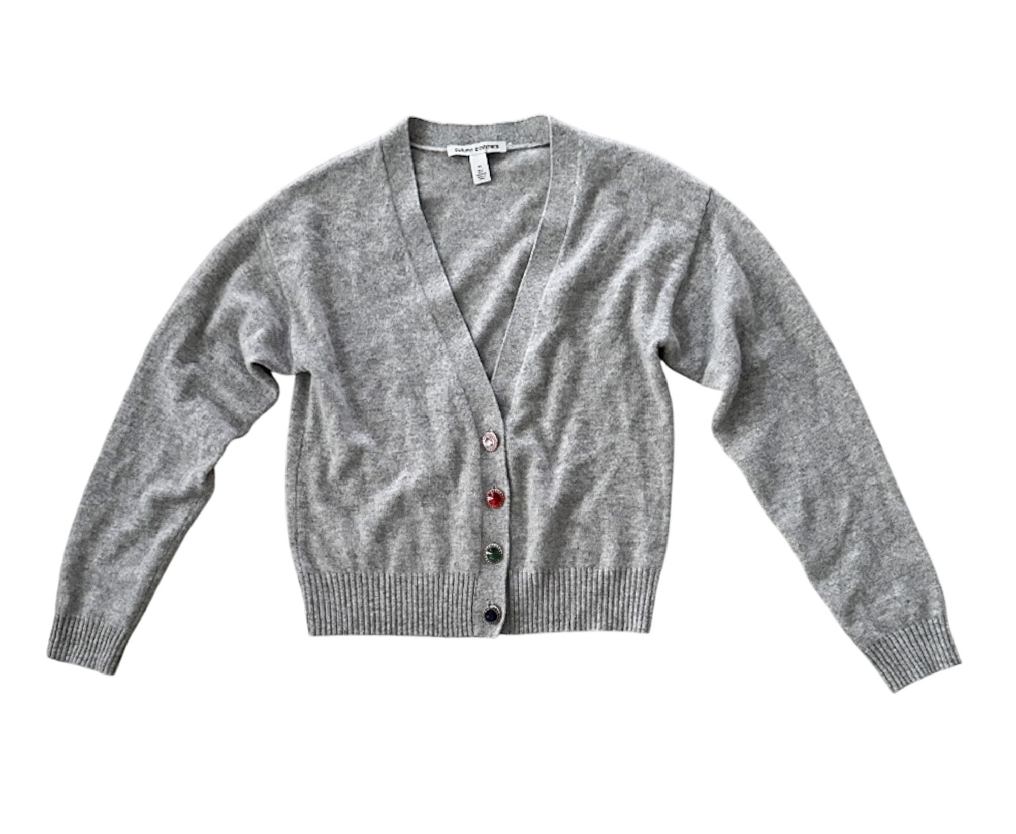 Autumn Cashmere Gray 100% Cashmere Jewel Button V-Neck Cardigan Sweater XS