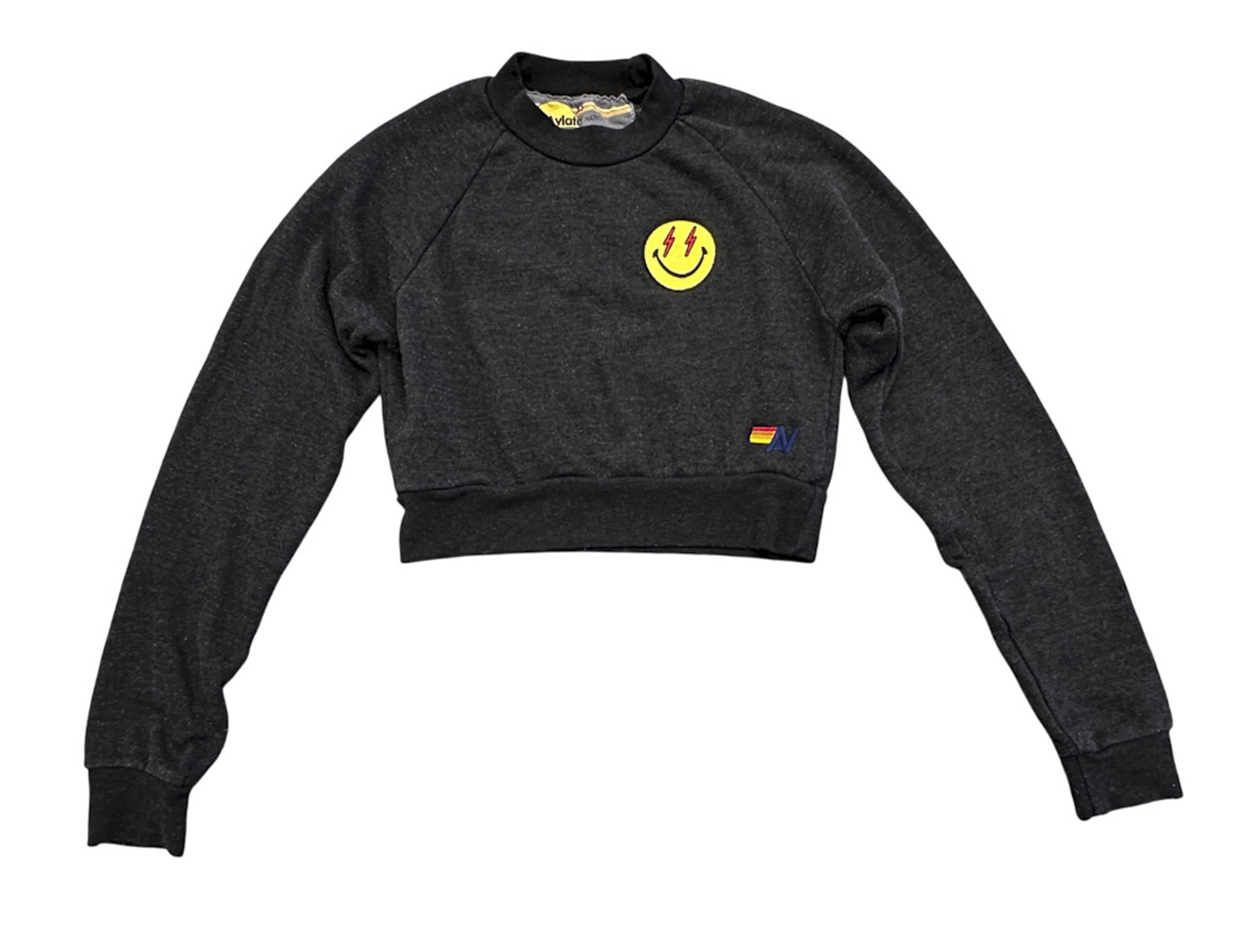 - Style: Black Bolt Eyes Smiley Embroidered Cropped Crew Sweatshirt