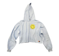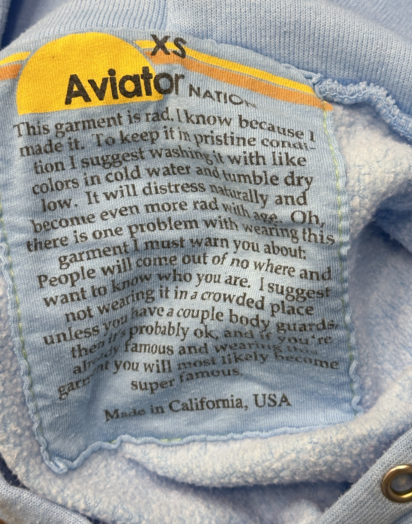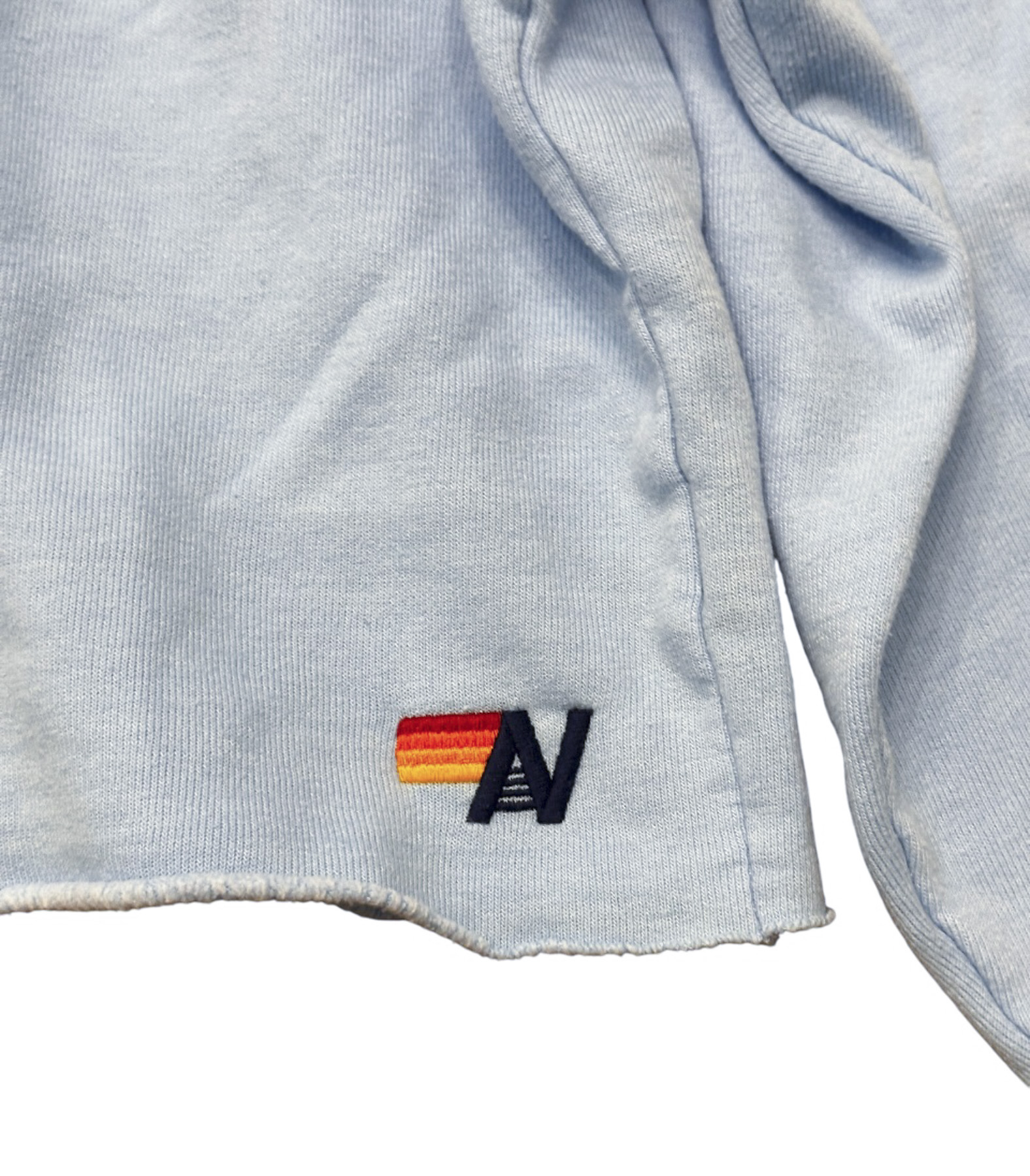 Aviator Nation Blue Smiley Logo Cropped Lounge Pullover Hoodie Sweatshirt XS