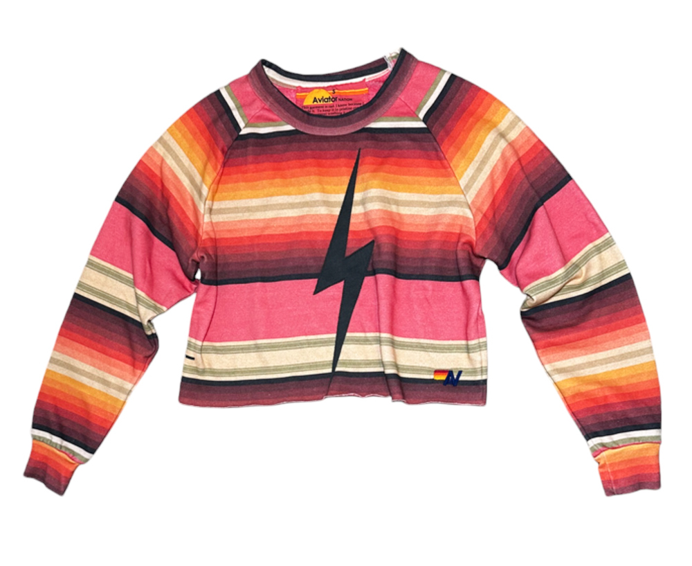 - Style: Striped Tulum Bolt Pullover Crew Neck Cropped Sweatshirt