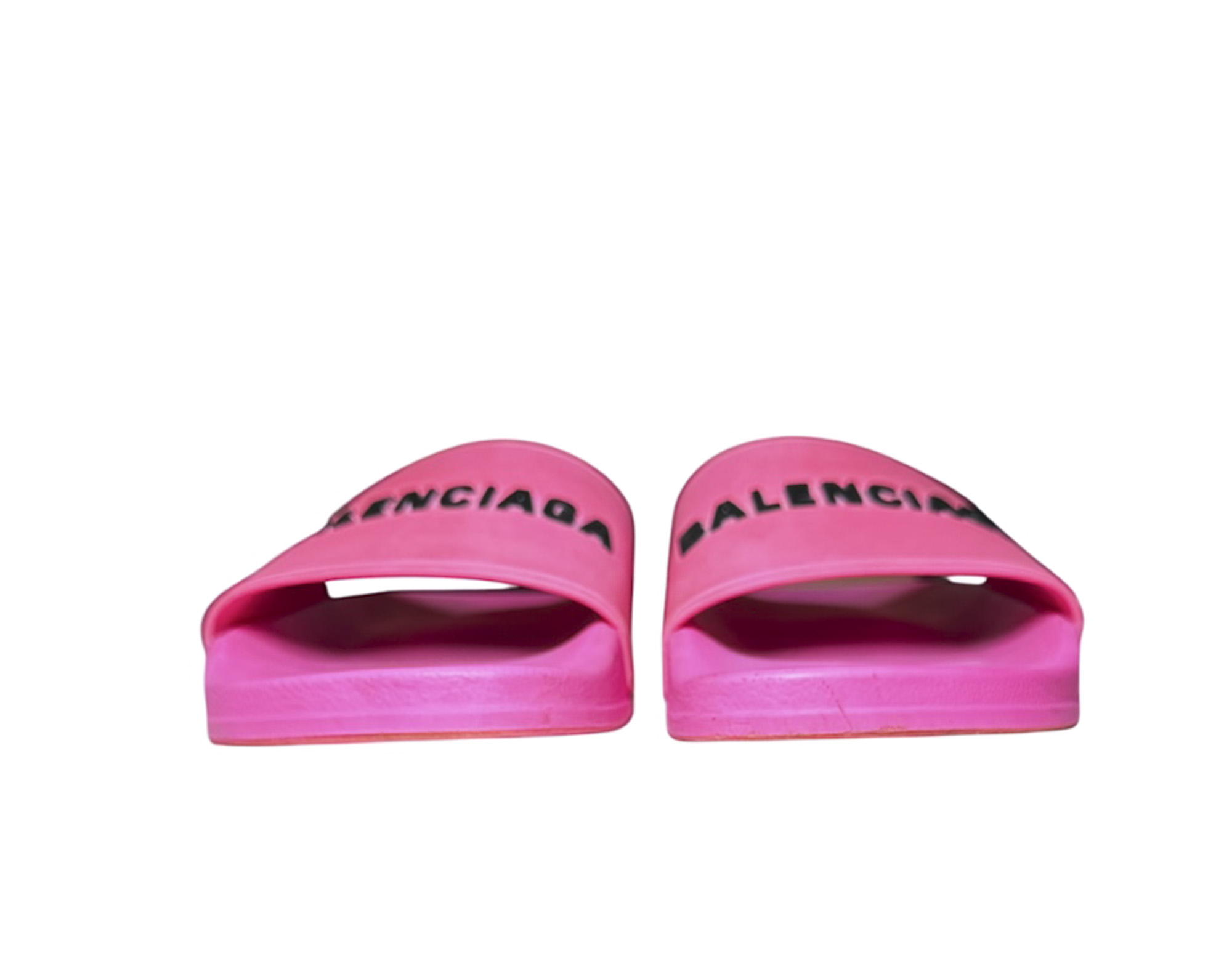 Balenciaga Fluo Pink Logo Rubber Beach Pool Slides Sandals Size 39