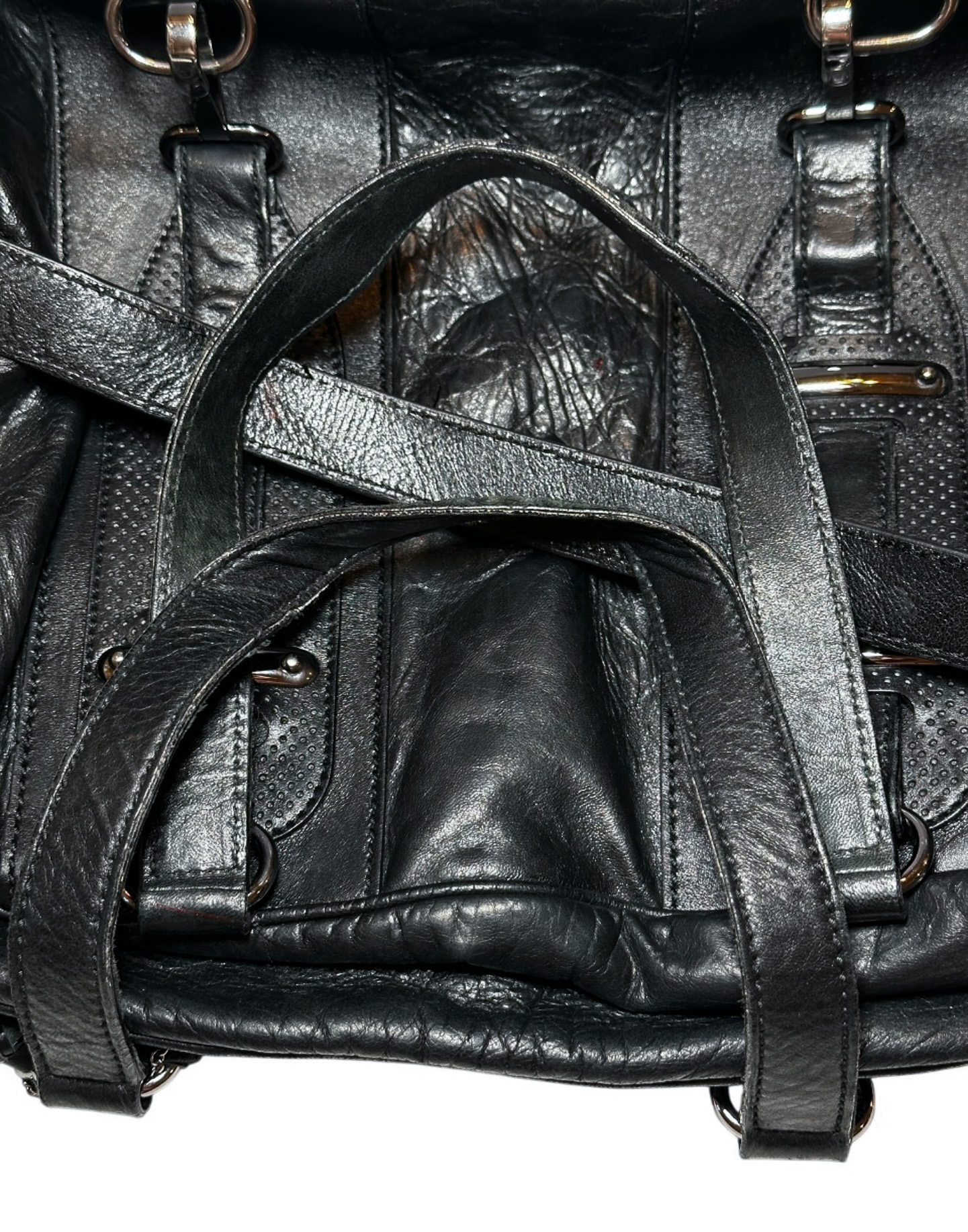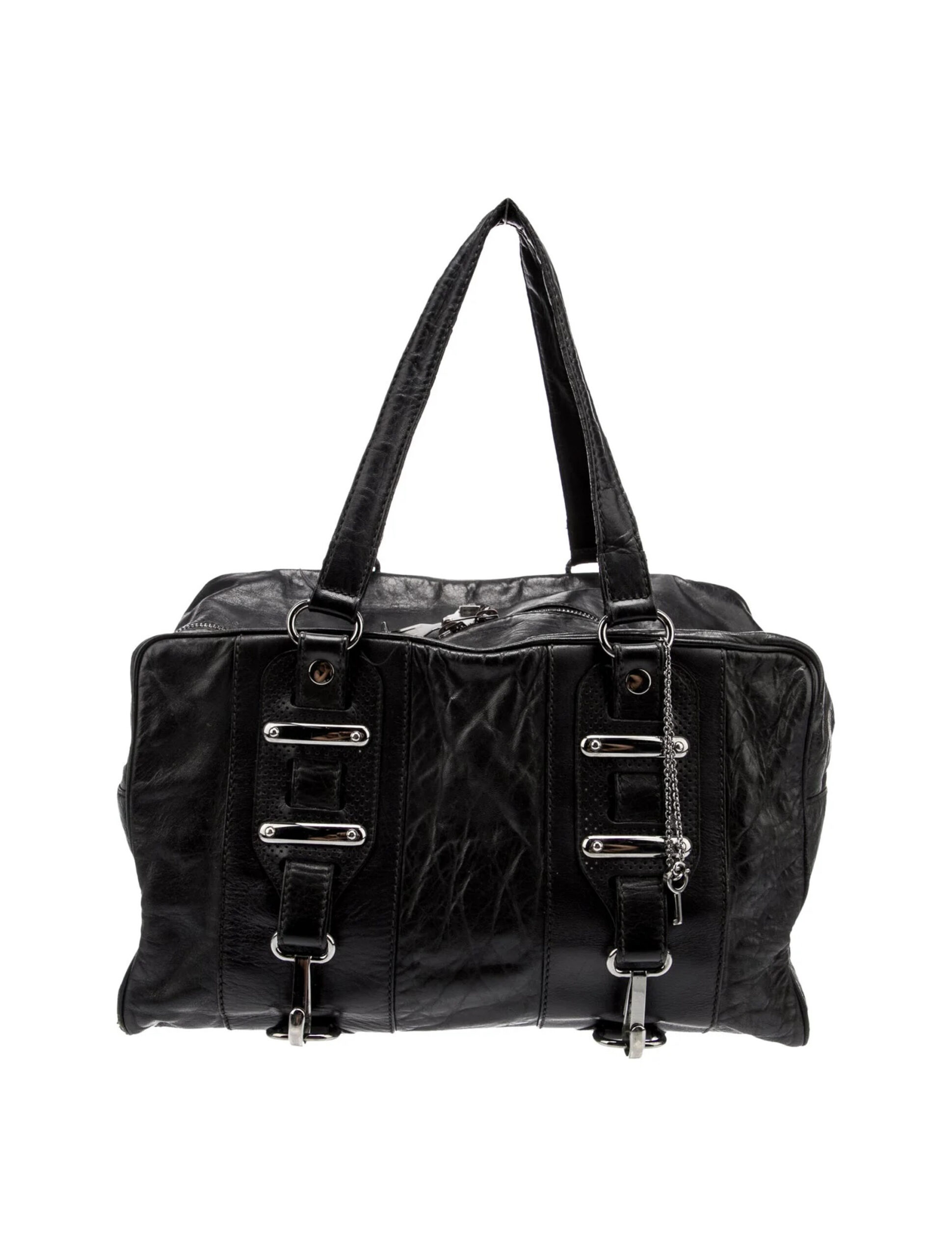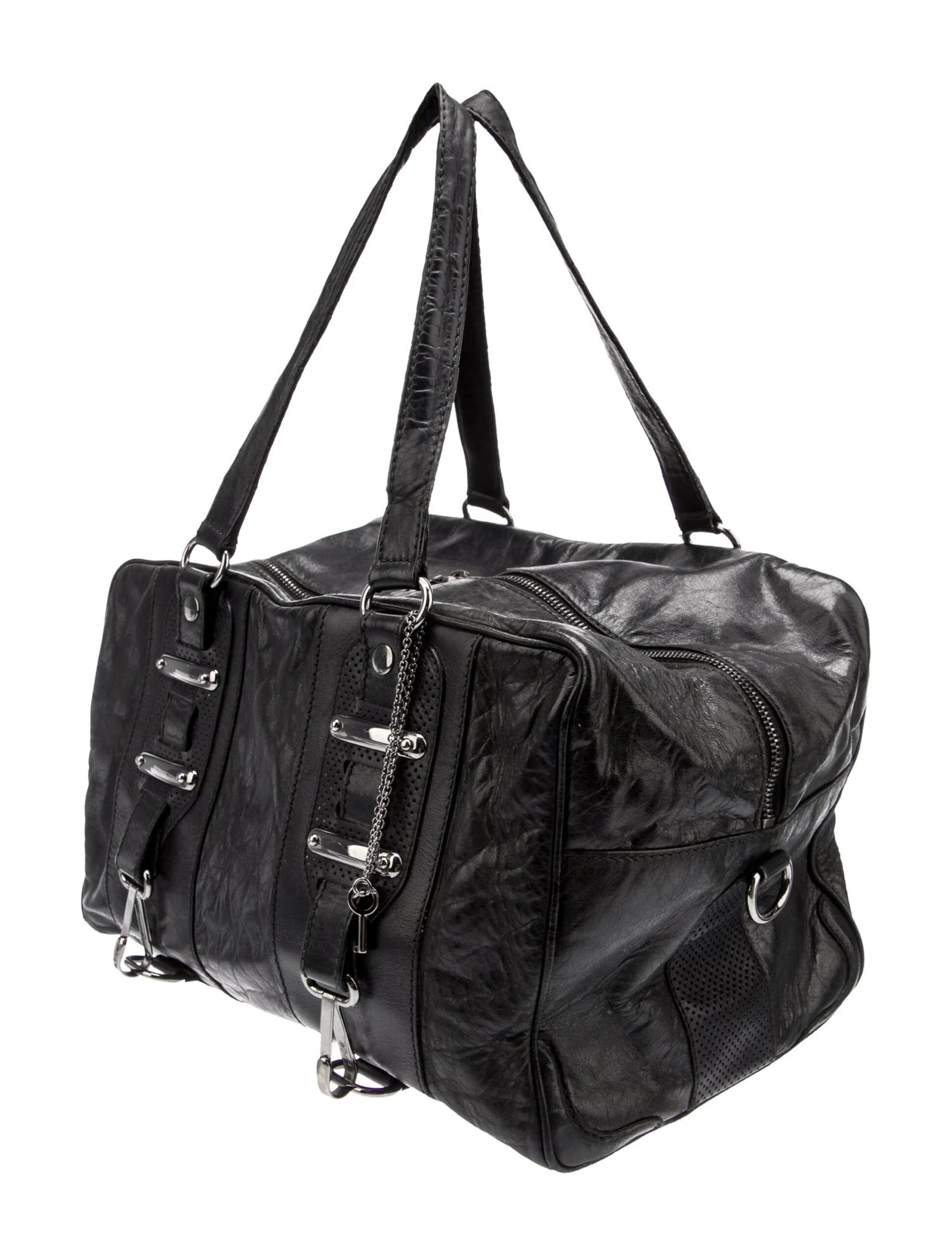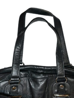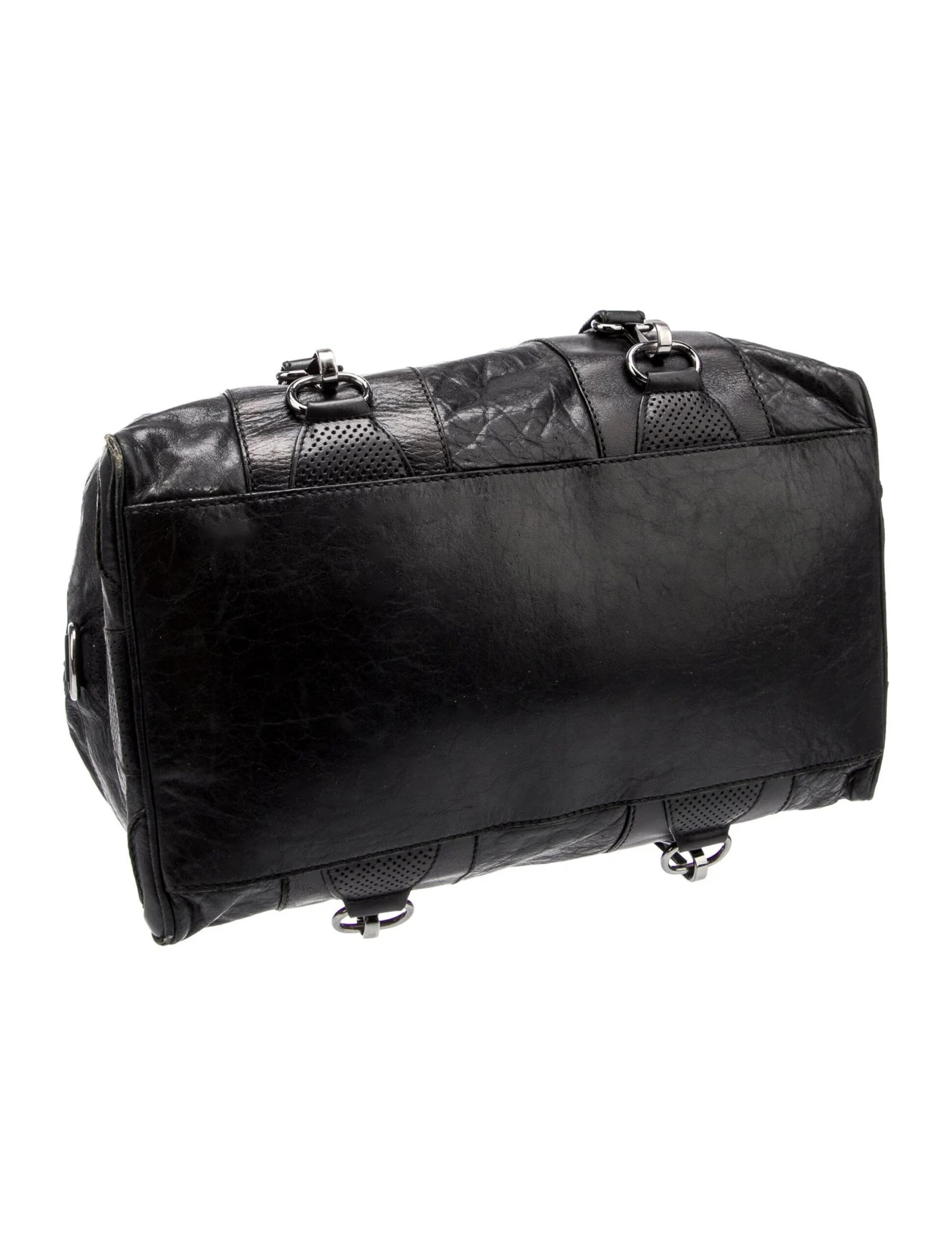 - Style: Hook Black Perforated Leather Silver Hardware Top Handle Satchel Bag