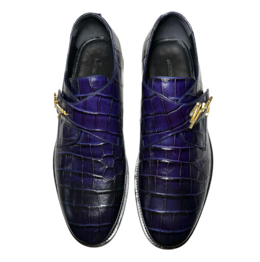 • Style: Blue Croco Monk Strap Logo Loafers Dress Shoes