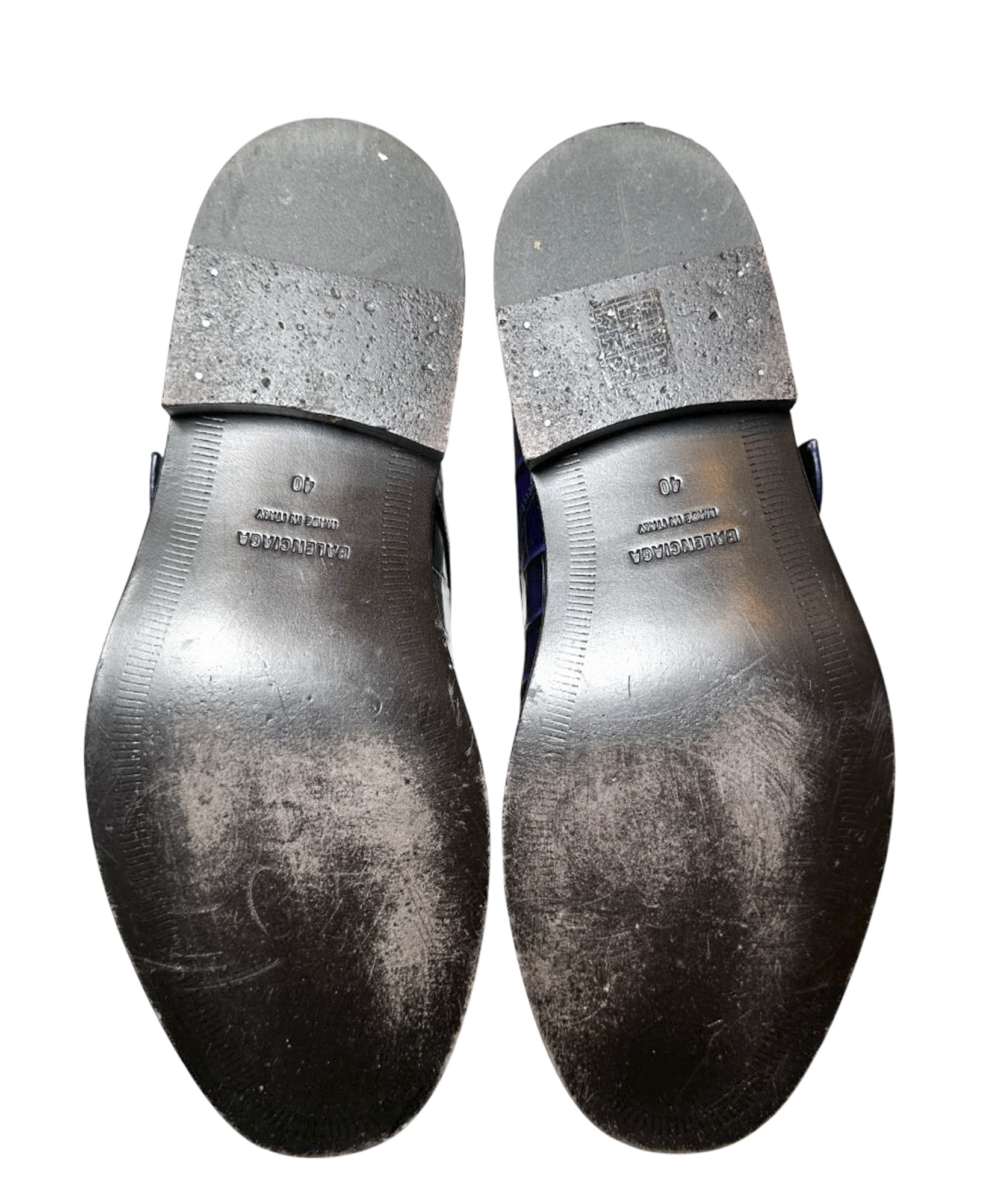 Balenciaga Men’s Blue Leather Monk Strap Logo Dress Shoes Size 40