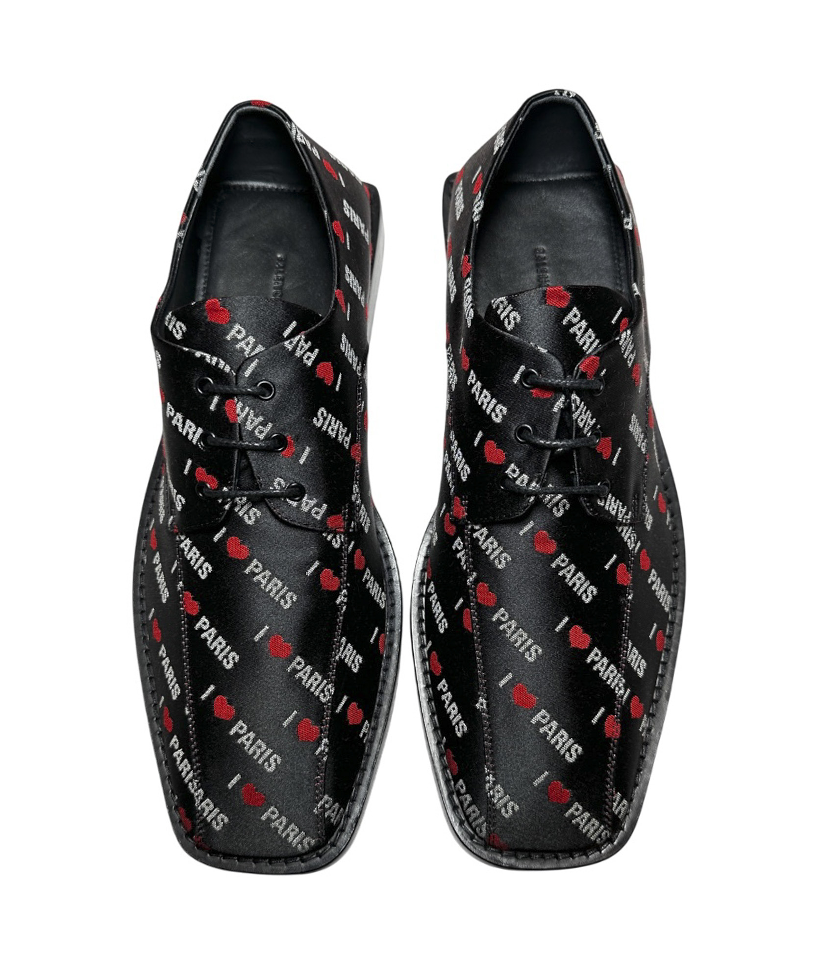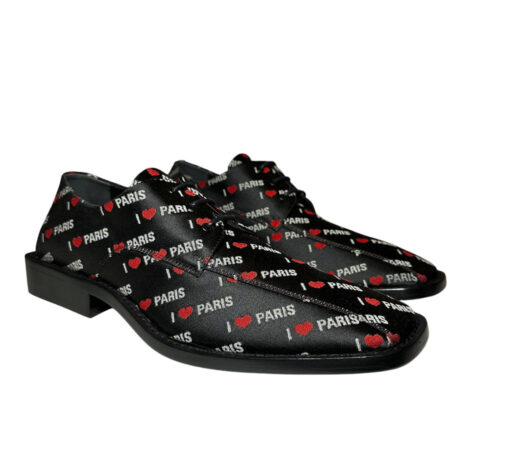 • Style: Black I Love Paris Logo Derby Loafers Dress Shoes