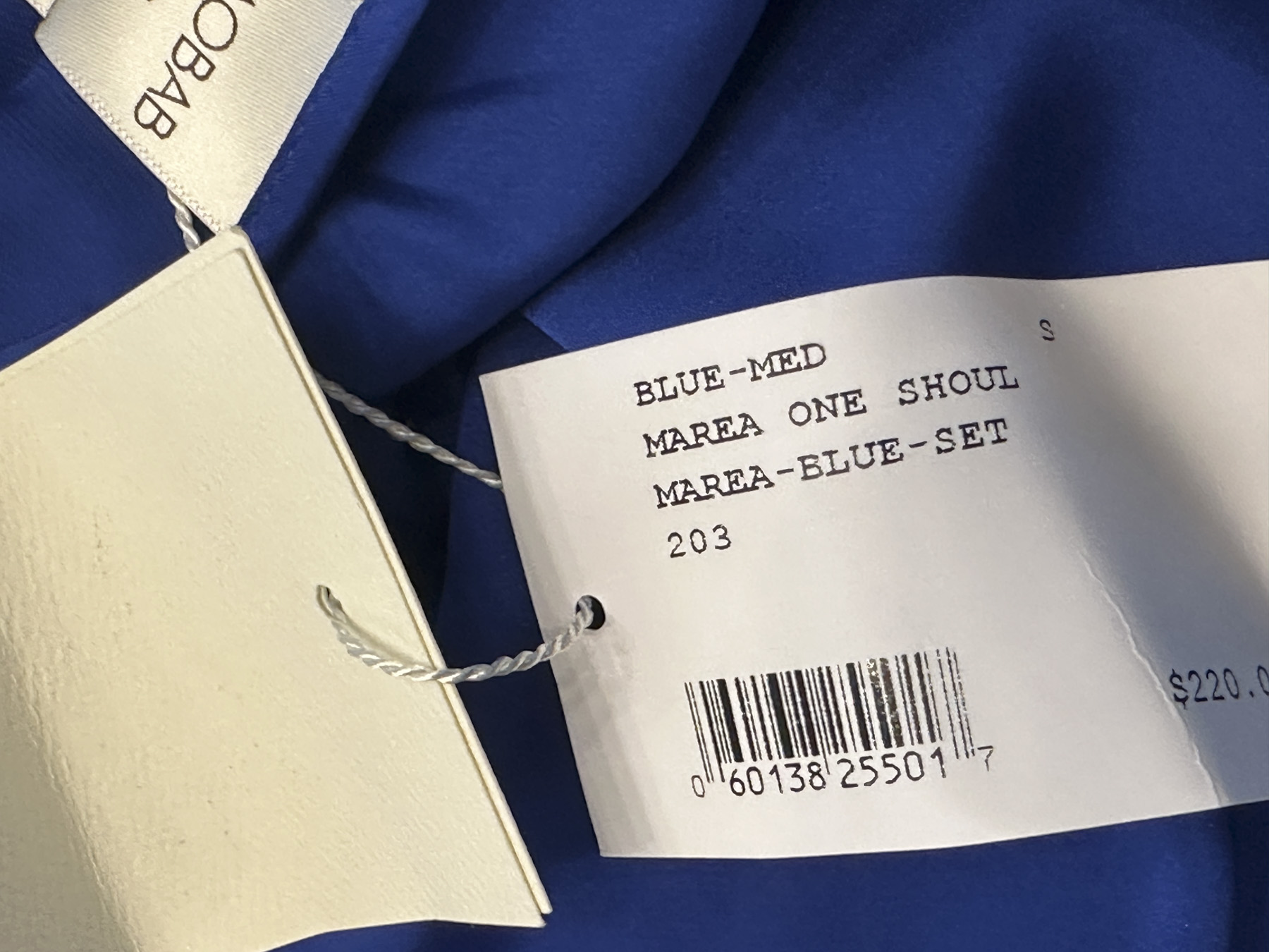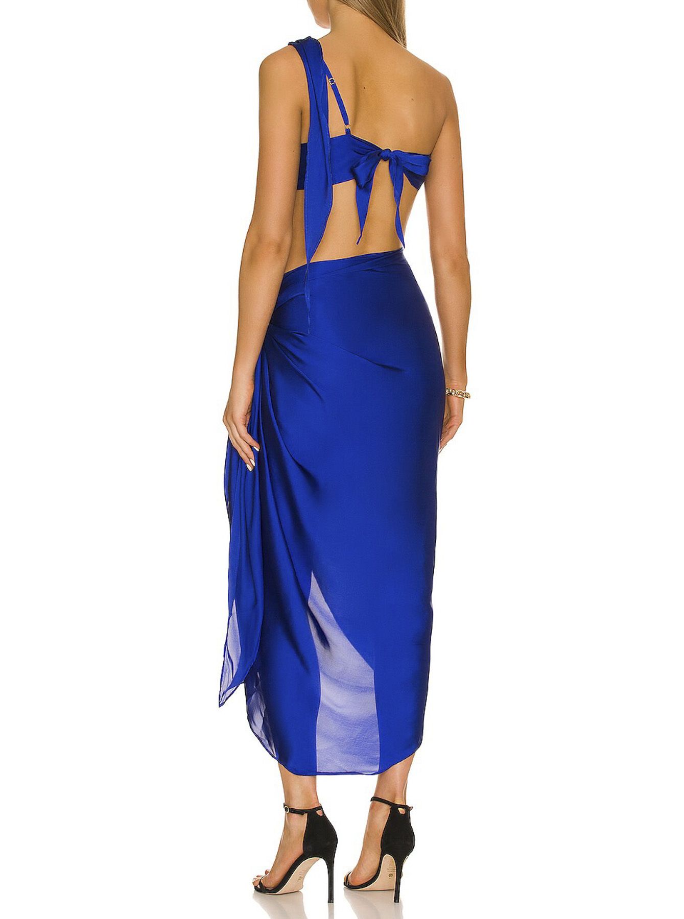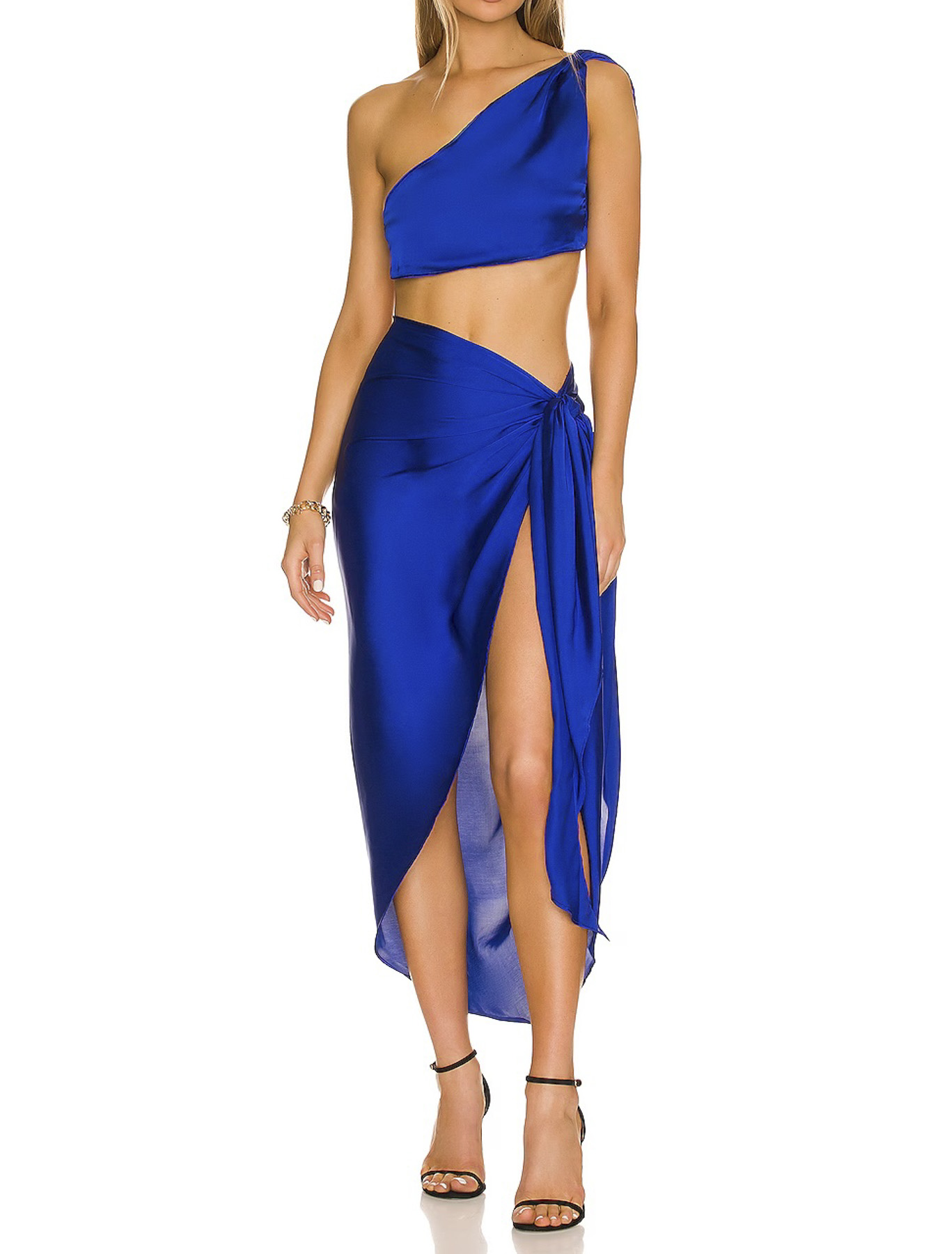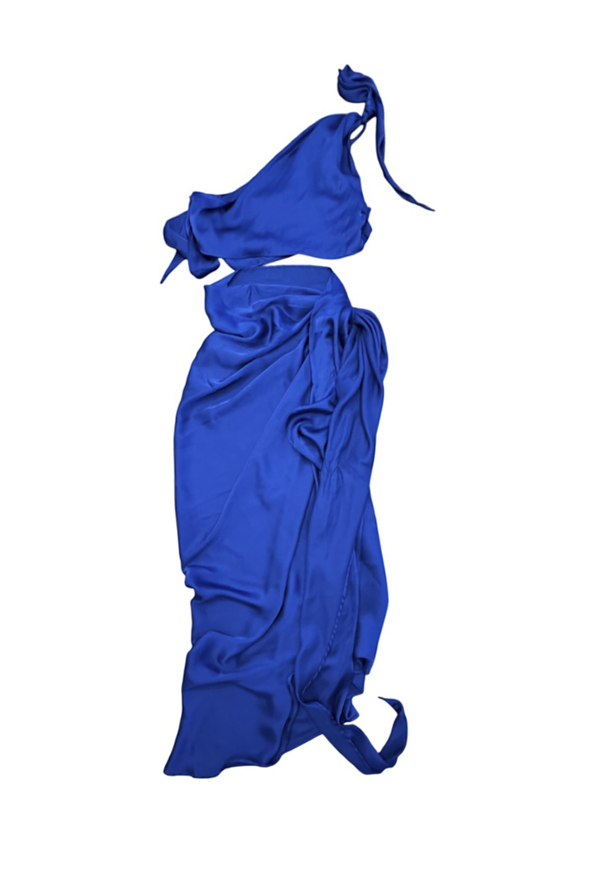BAOBAB NWT Marea Blue Satin One Shoulder Top Maxi Wrap Skirt 2 Piece Dress Set