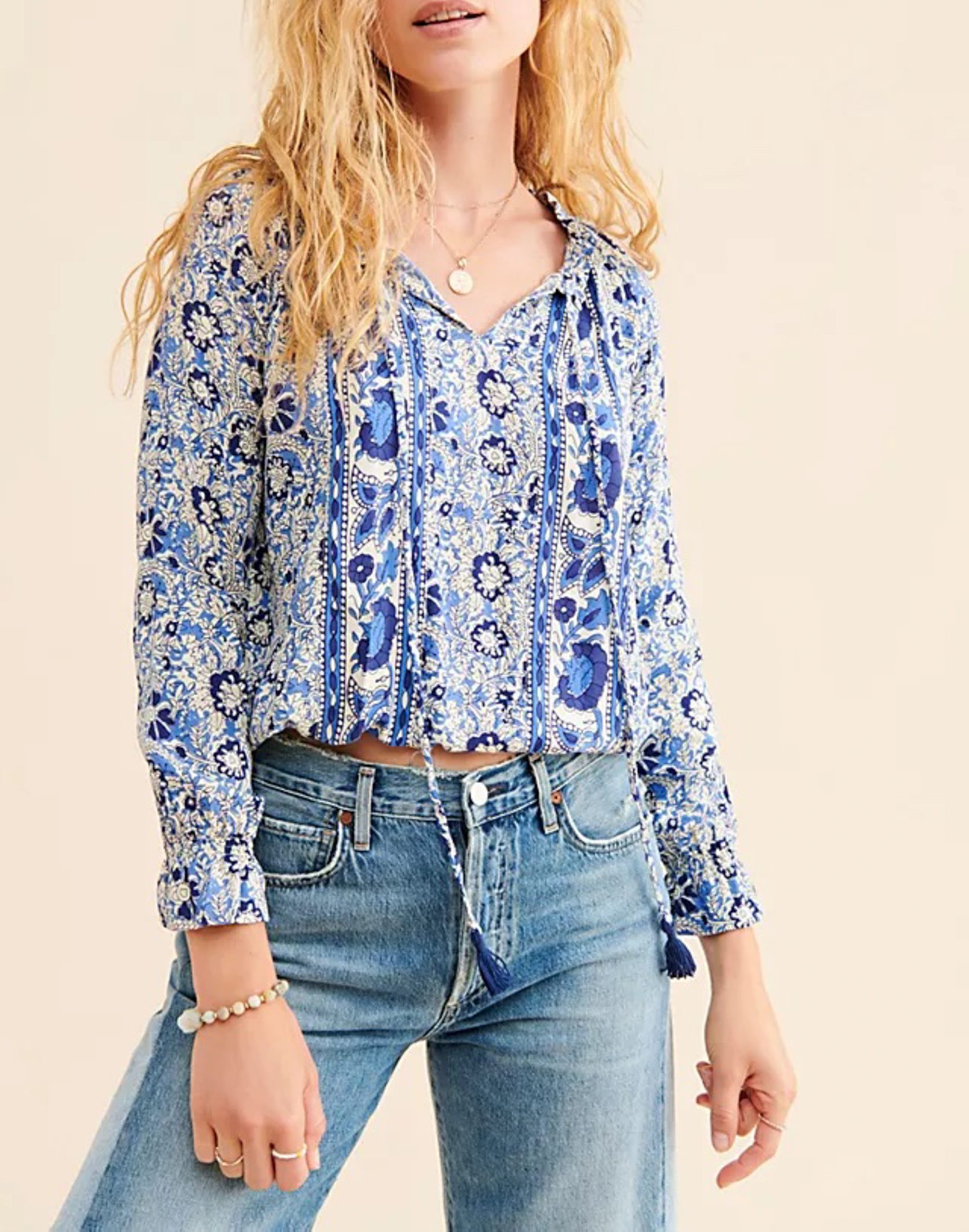 - Style: RILEY BLUE PRINTED LONG SLEEVE TOP BLOUSE