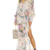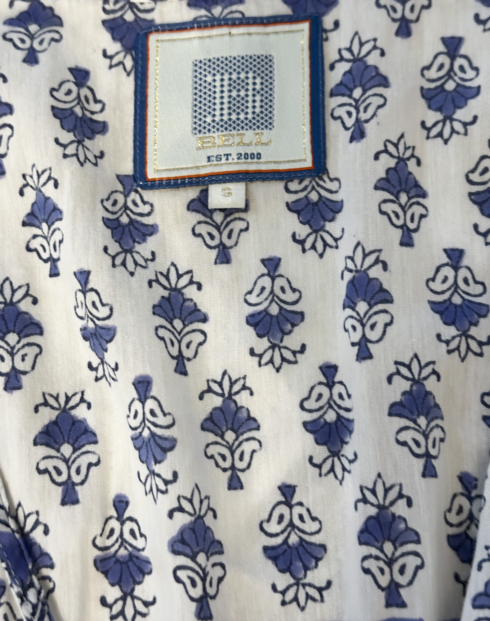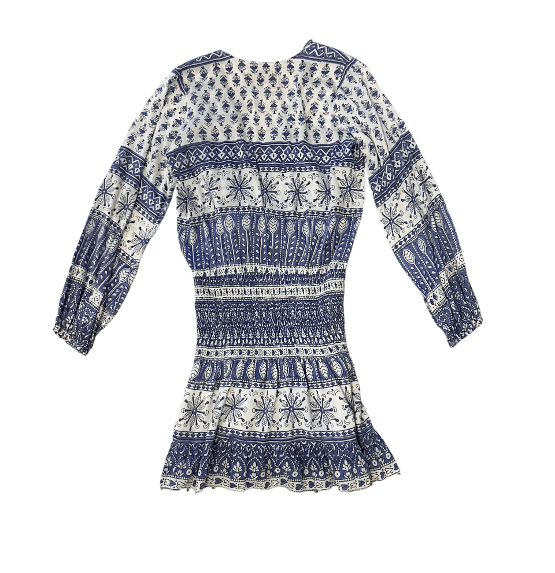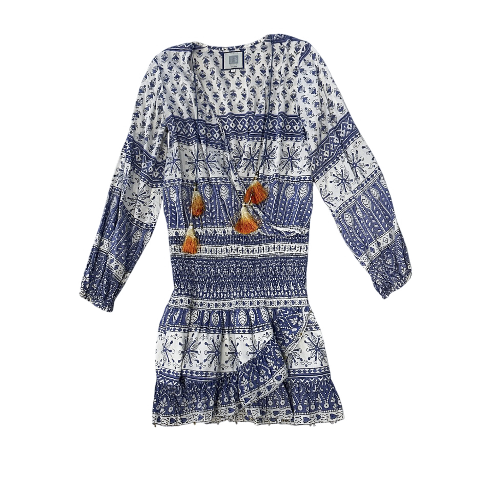 Bell by Alicia Bell Blue Floral Print Long Sleeve Boho Tiered Mini Dress Small