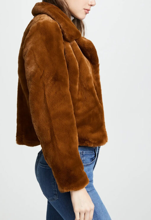 - Style: Faux Fur Teddy Long Sleeve Brown Cropped Jacket Coat