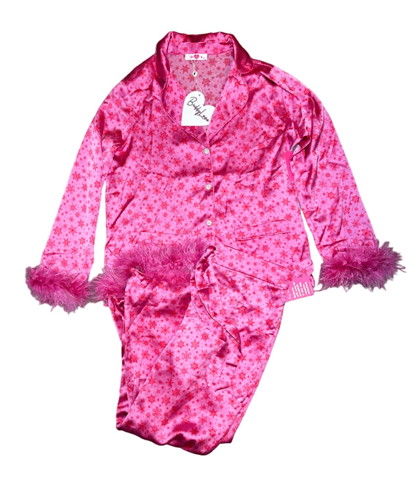 Buddy Love NWT Mckenna Pink Frostbite 2 Piece Loungewear Pajamas Set Medium