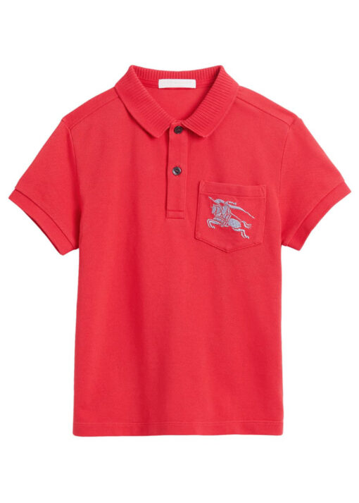 Burberry Boys Grant Short Sleeve Logo Collared Polo Shirt Red 10Y