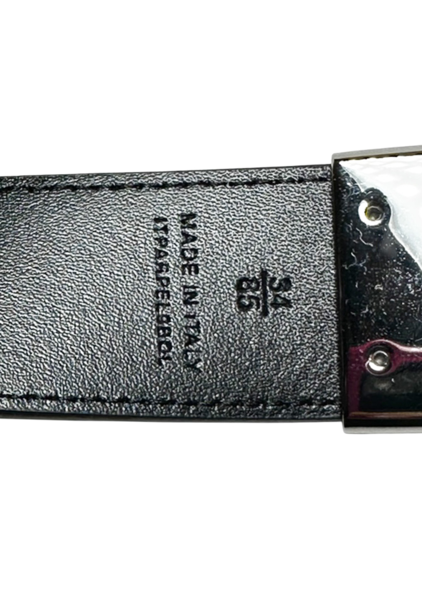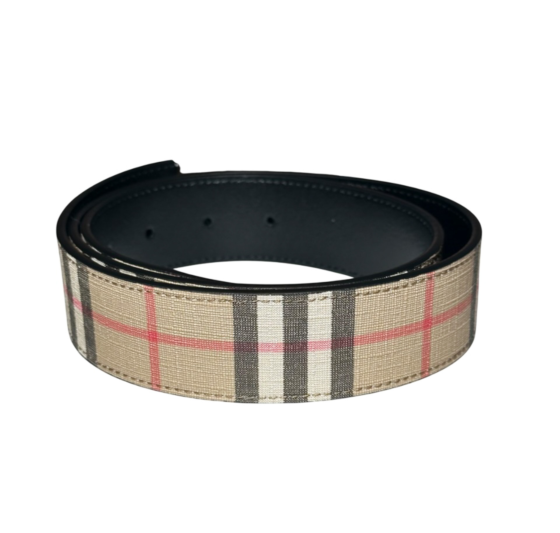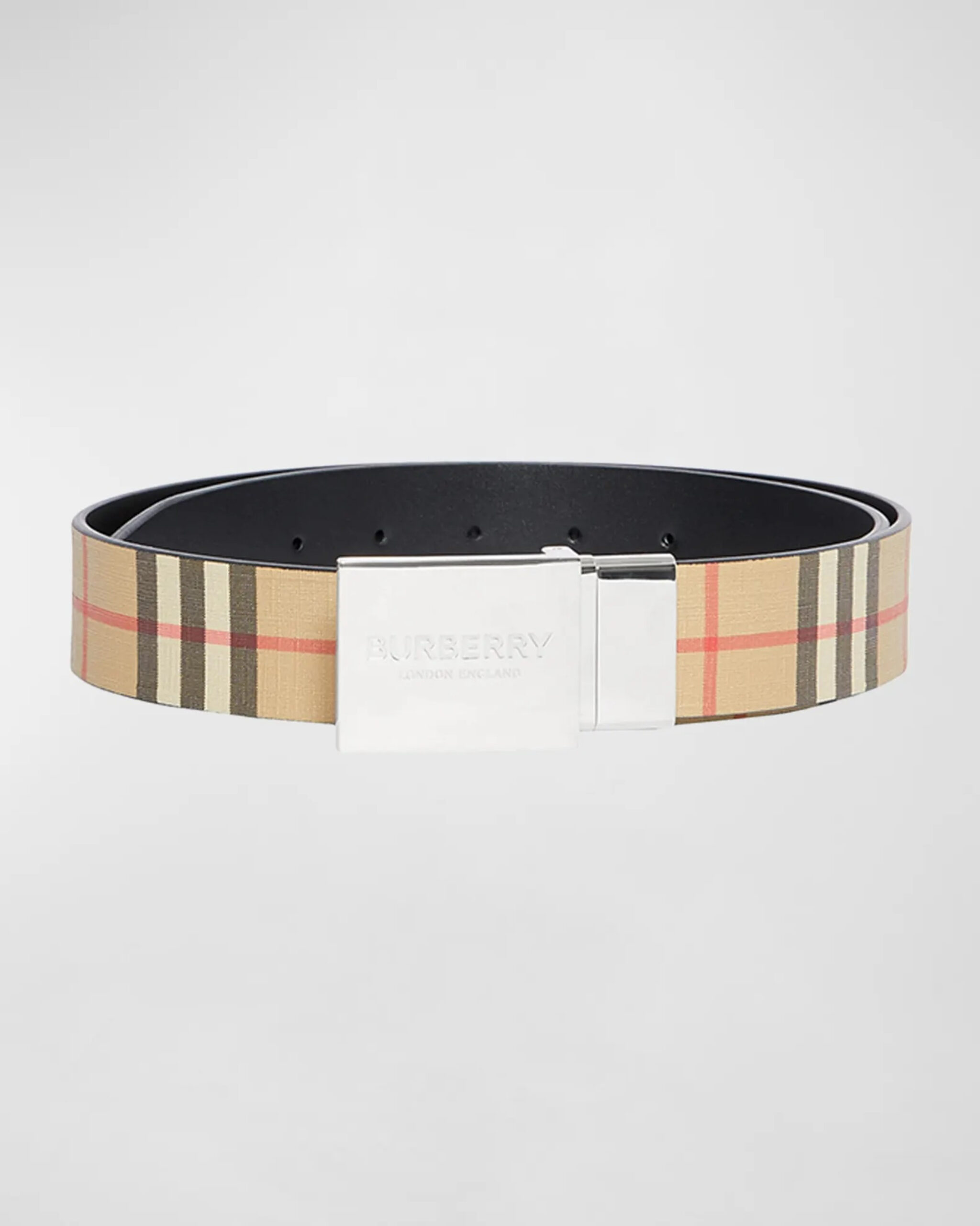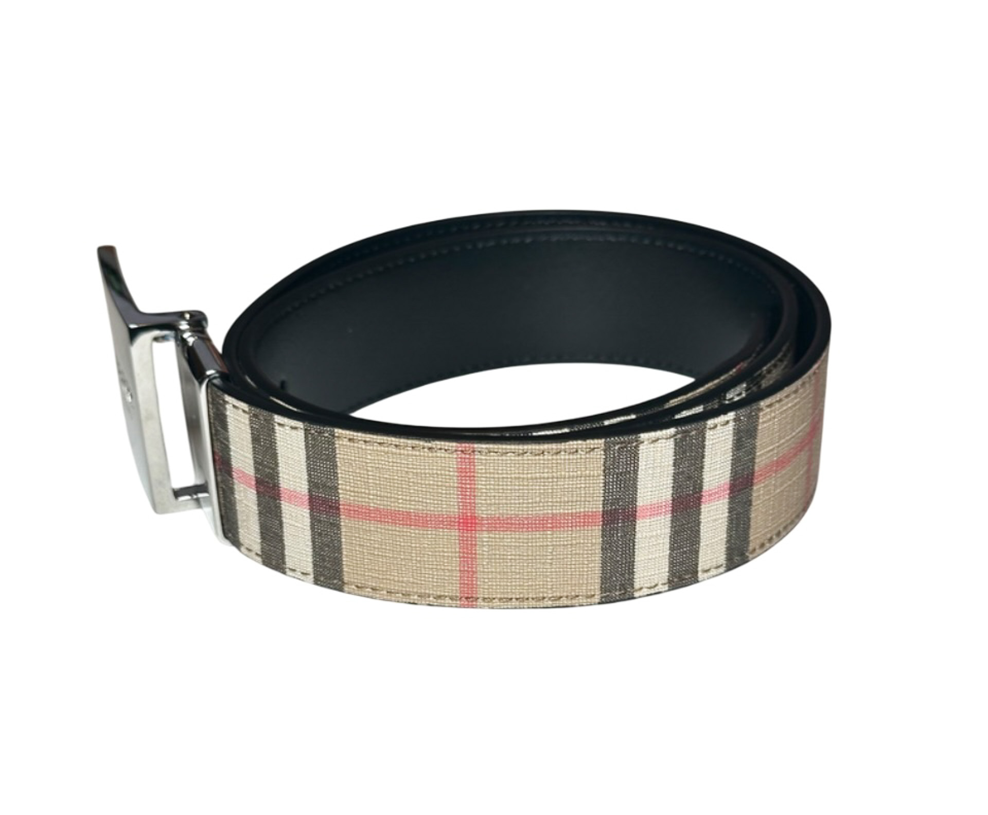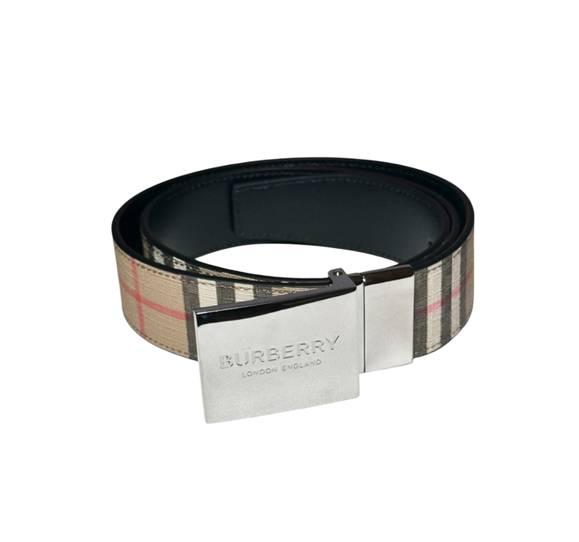 • Style: Men’s Signature Check Leather Logo Silver Plaque Buckle Waist Belt