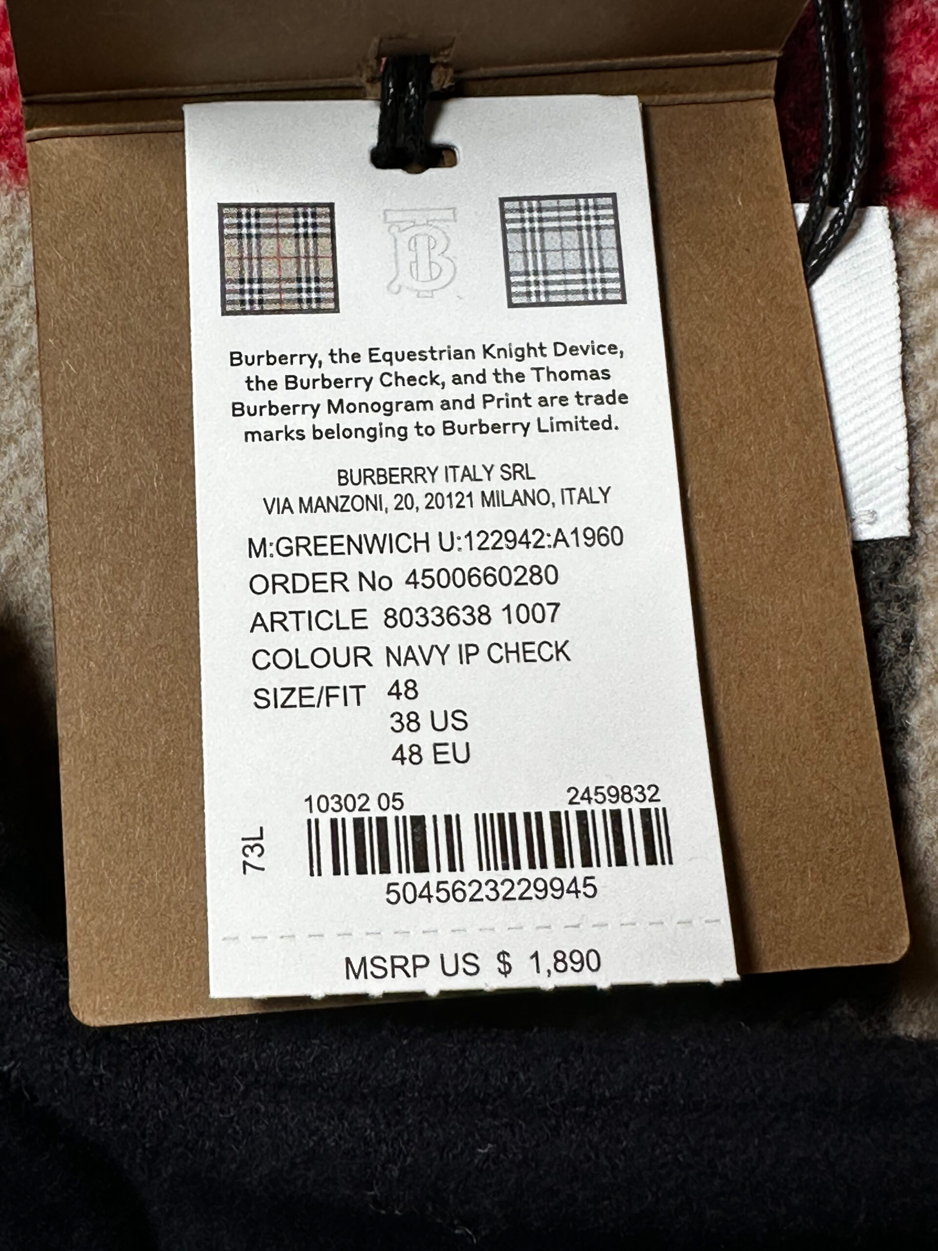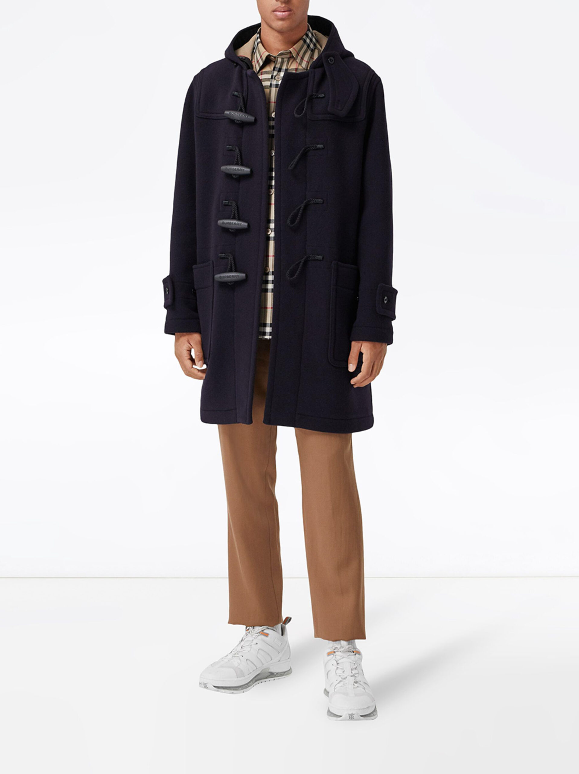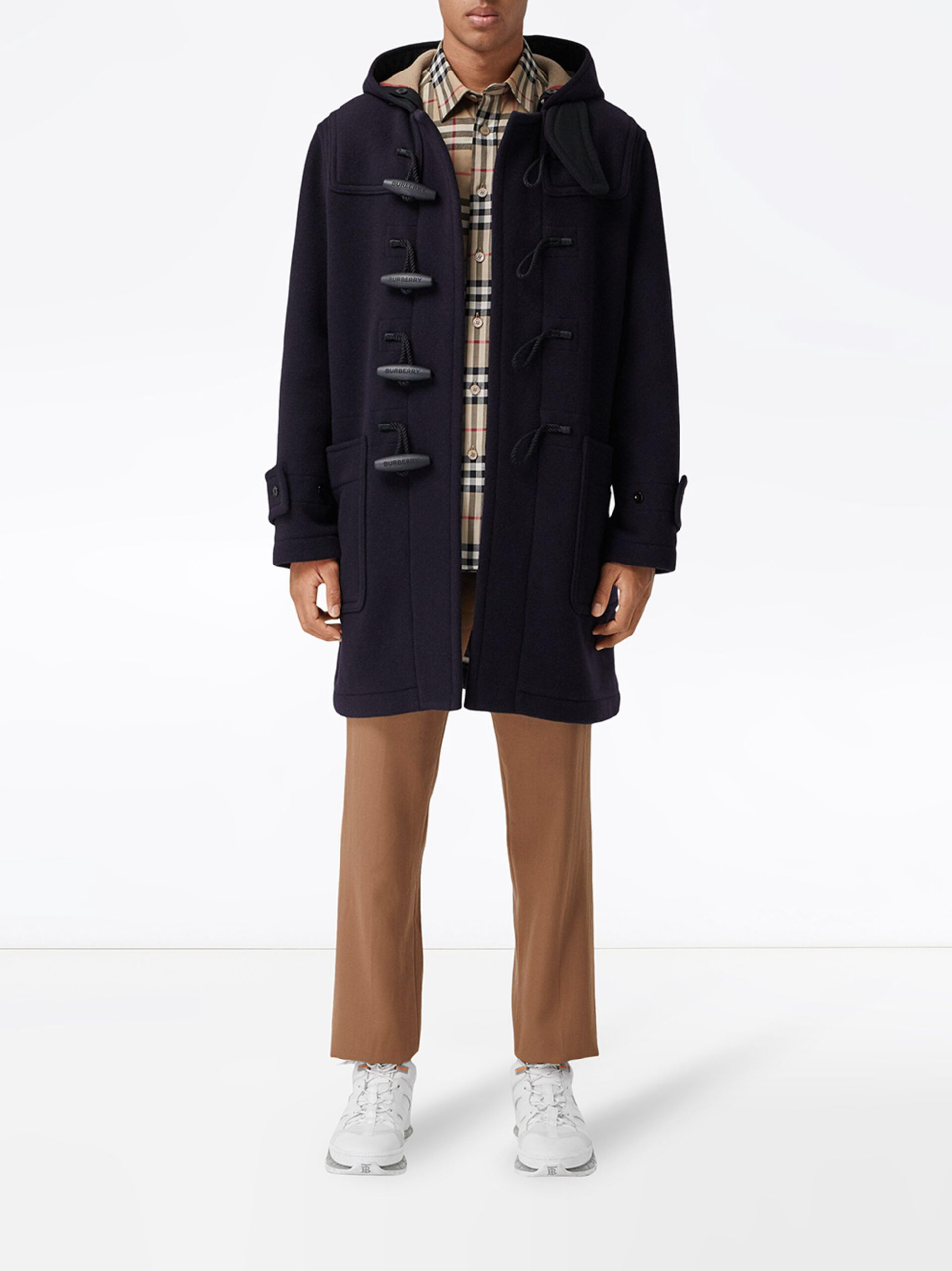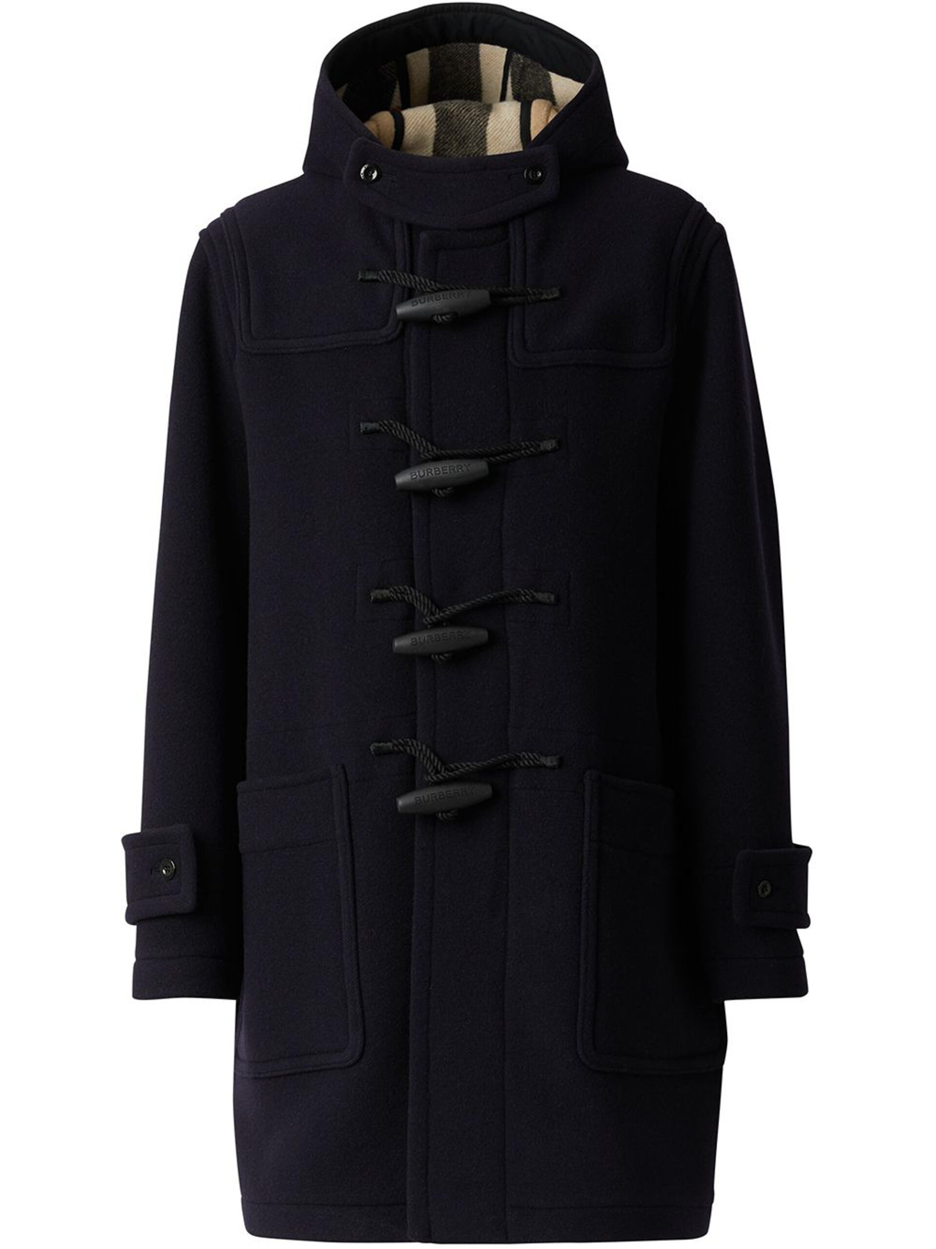 Burberry NWT Men’s Navy Wool Check Lined Duffle Coat Size 48 NEW
