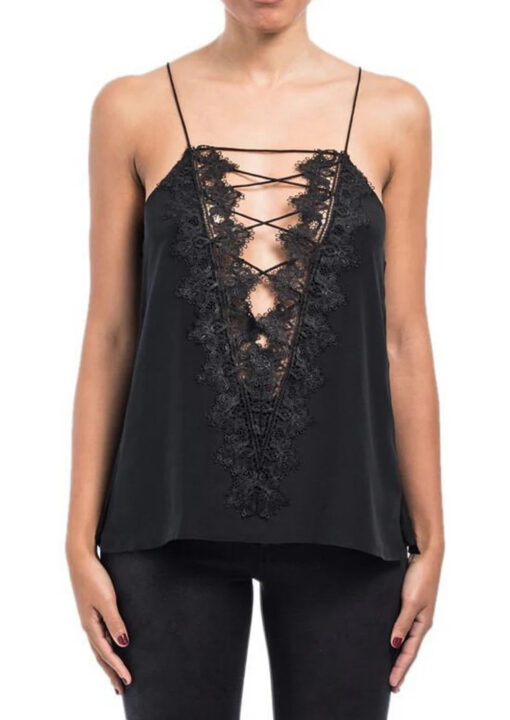 - Style: Charlie V-Neck Silk Lace Sleeveless Camisole Top Blouse