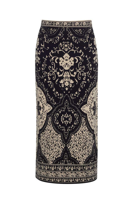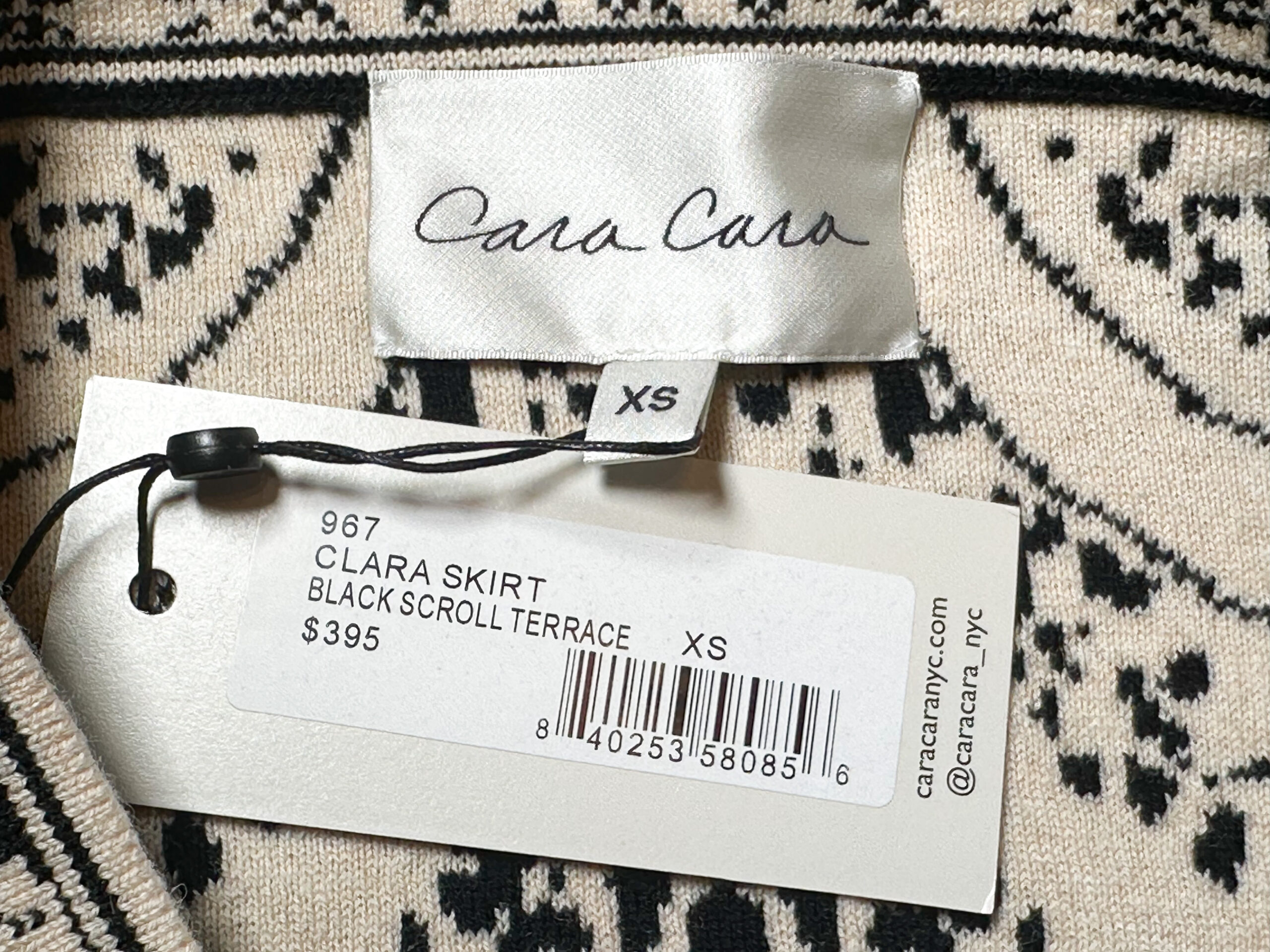 Cara Cara NWT Clara Black Scroll Terrace Knit Midi Skirt XS NEW