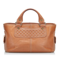 - Style: Boogie Bag Tan Quilted Calfskin Top Handle Satchel Handbag