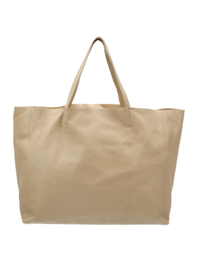 - Style: Beige Lambskin Leather Horizontal Cabas Shoulder Tote Bag