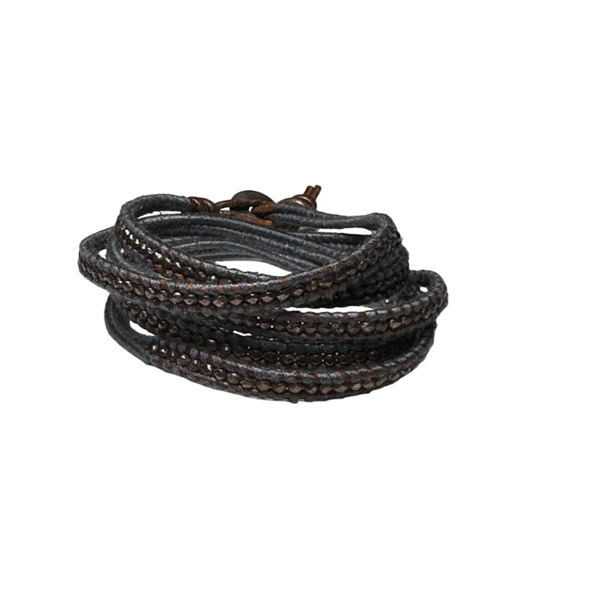 Chan Luu Gray Leather 925 Sterling Silver Crystal Wrap Bracelet