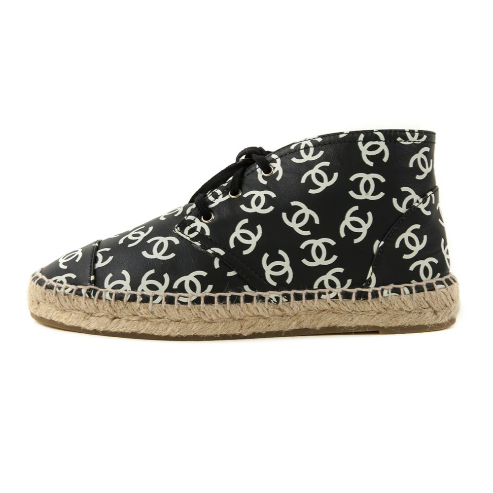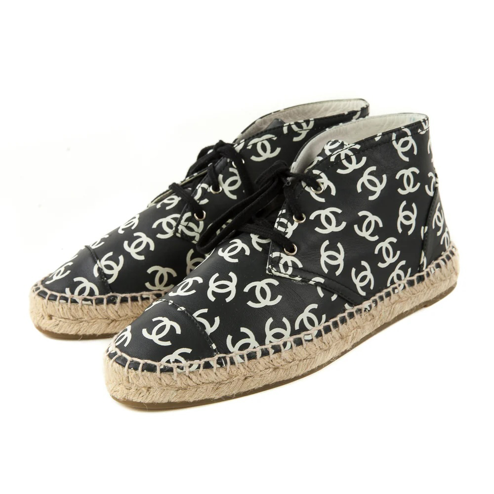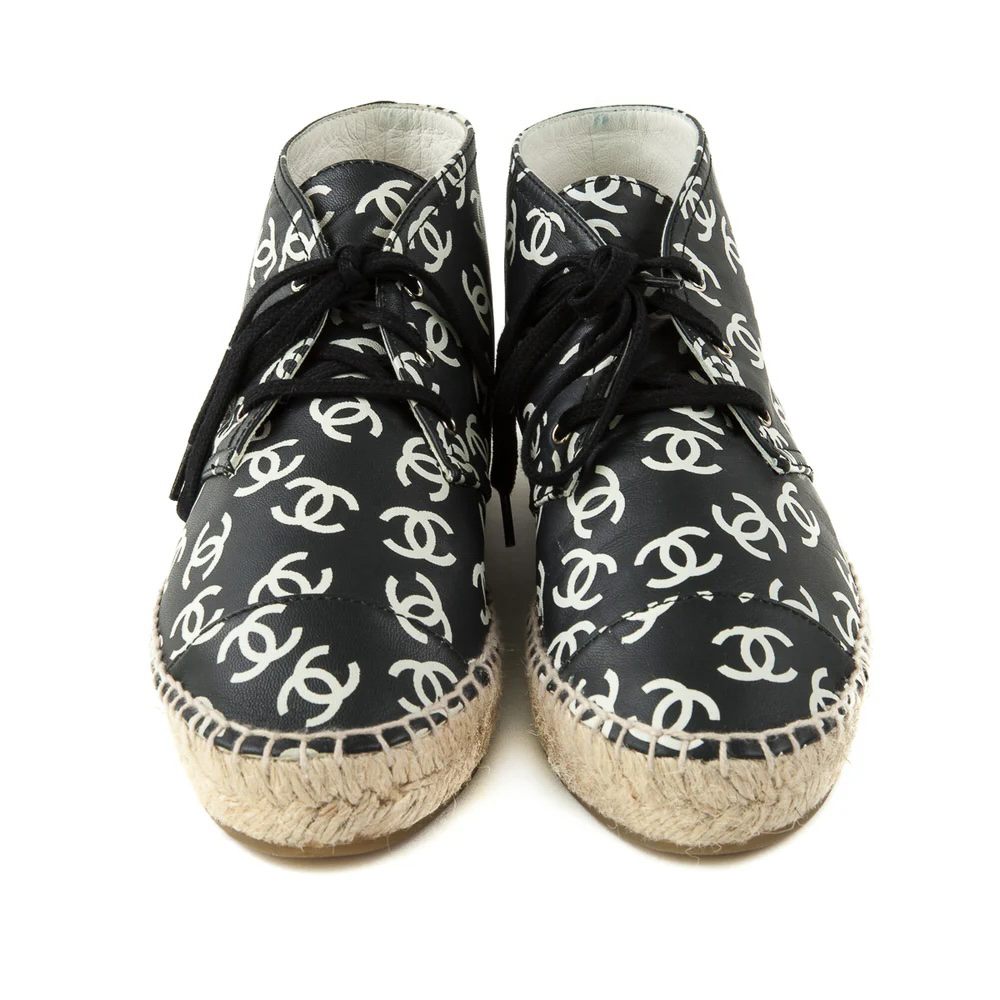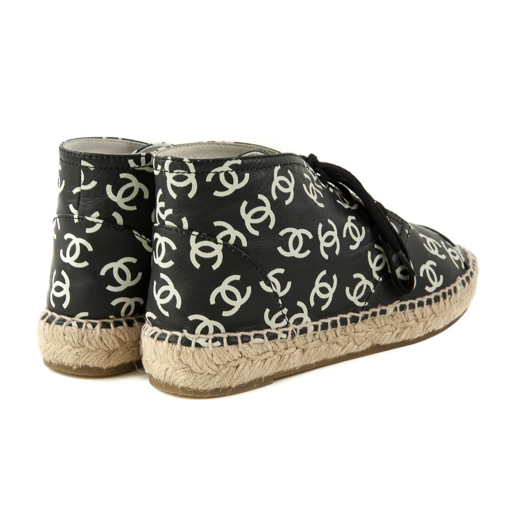 • Style: 15S Black White CC Logo Lamb High Top Lace Up Espadrille Sneaker Shoe