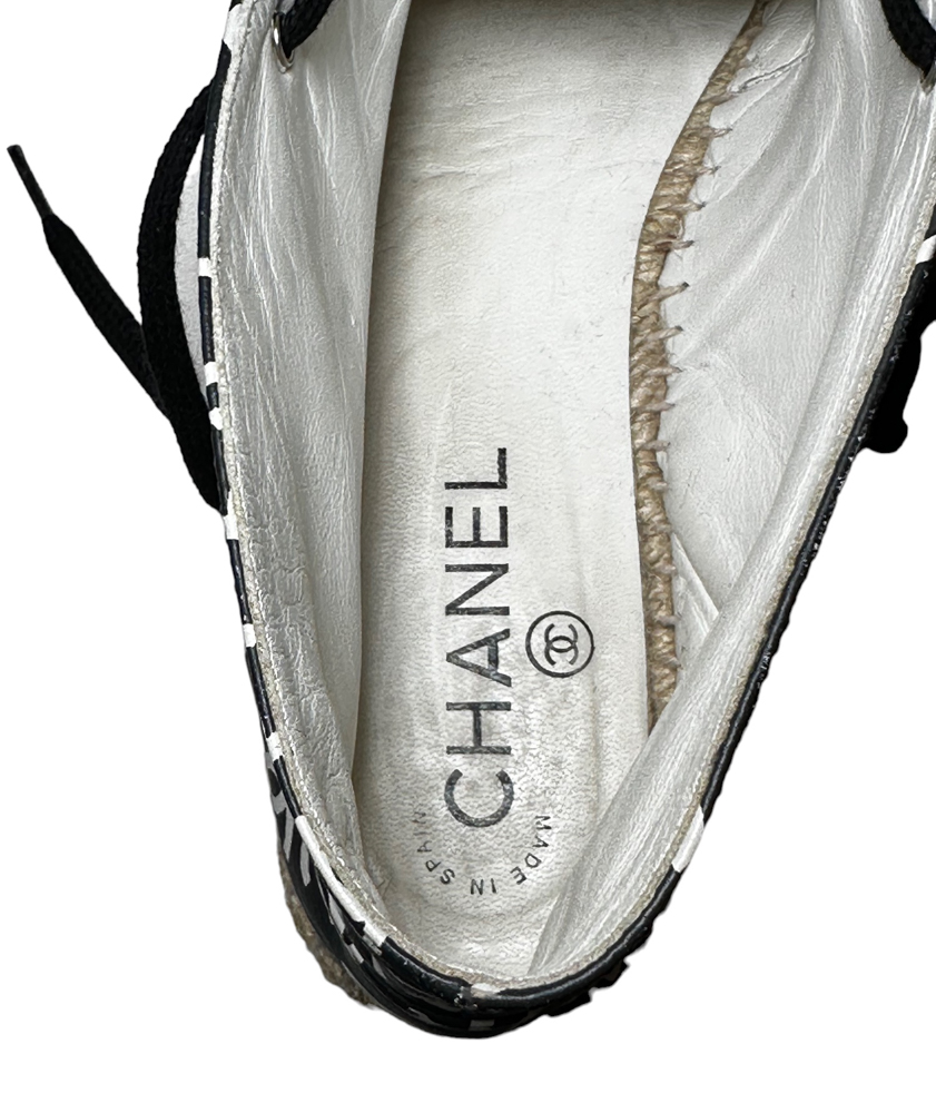 Chanel 15S Black White CC Logo Lamb High Top Lace Up Espadrille Sneaker Shoe 38