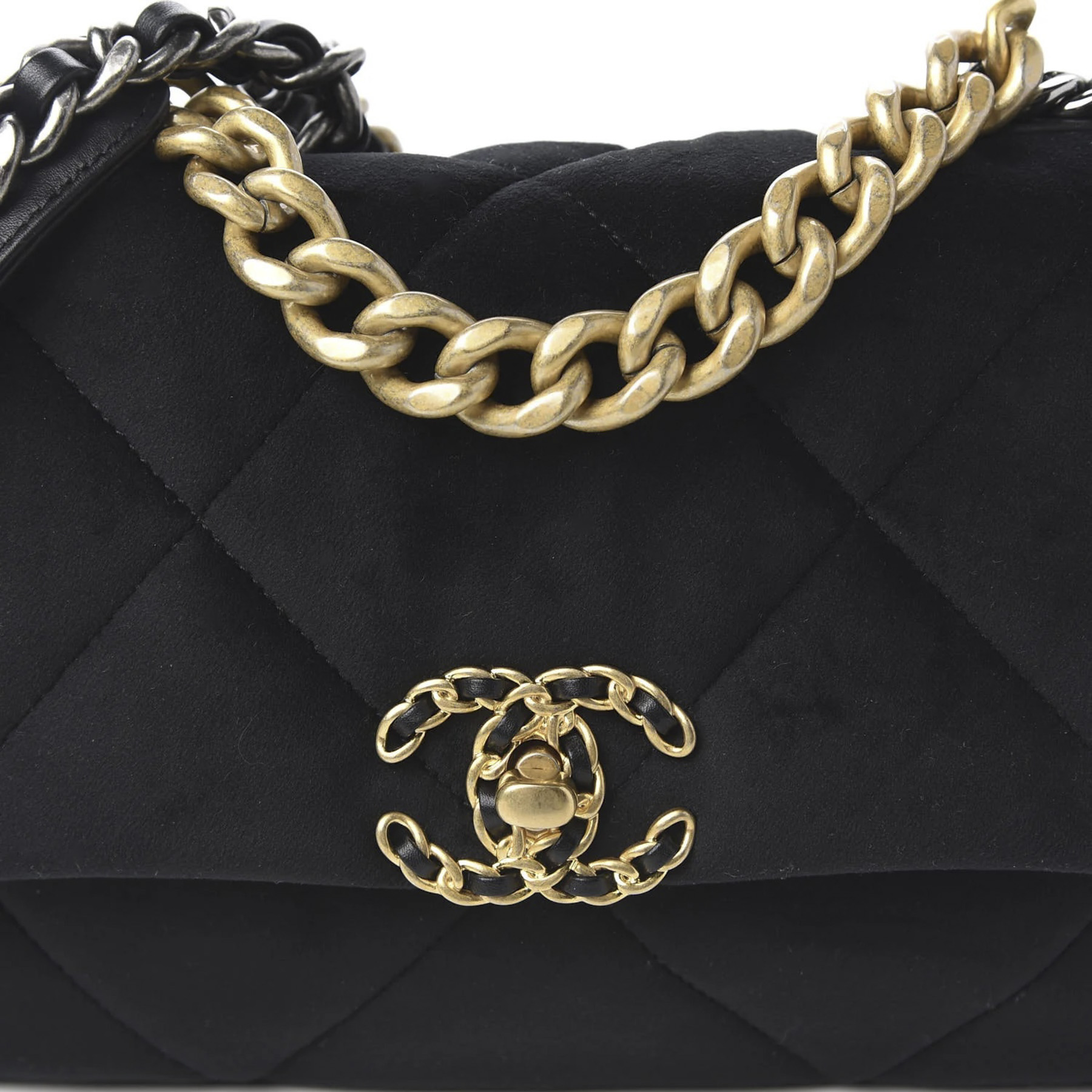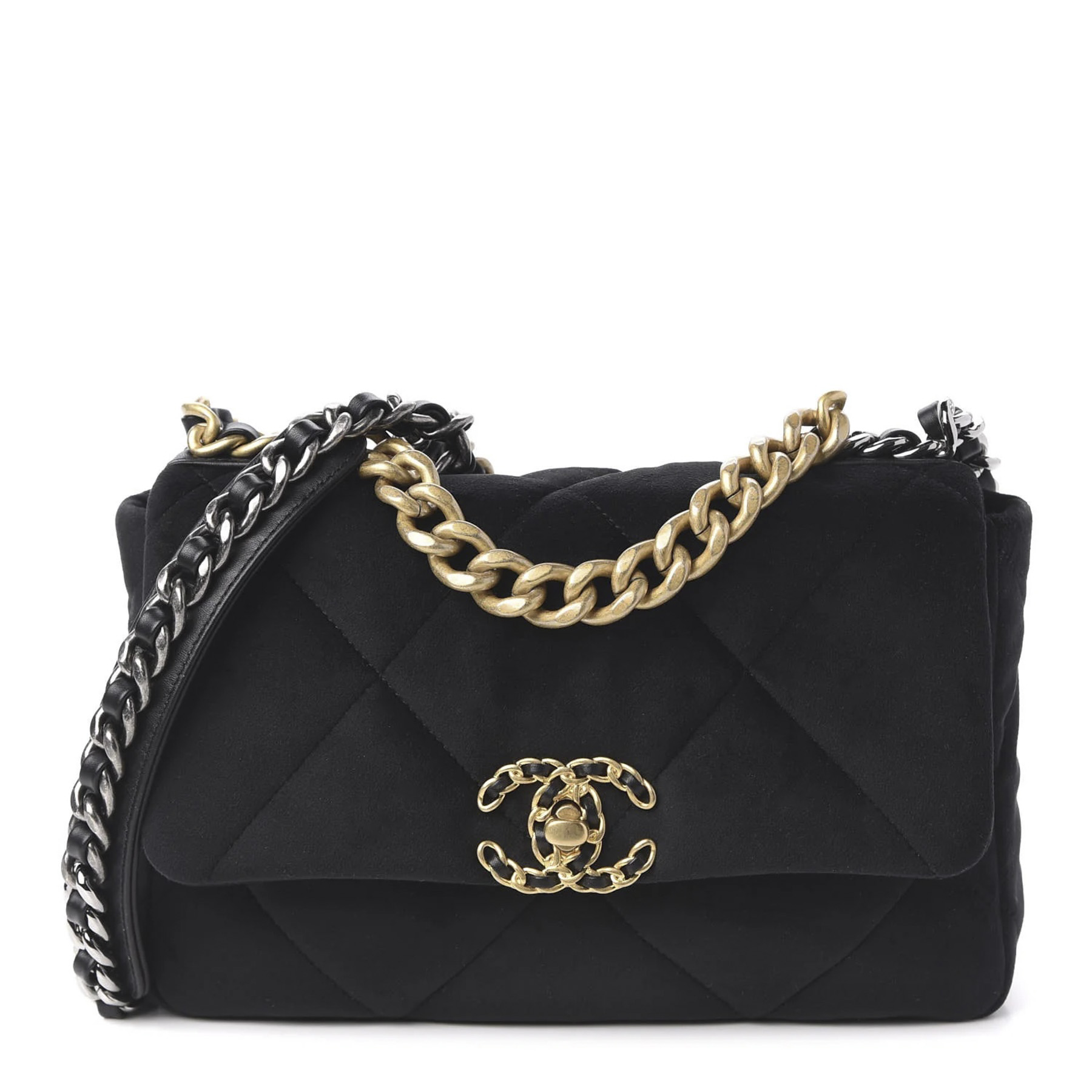 • Style: Black Velvet Quilted Medium Chanel 19 Flap Crossbody Shoulder Bag