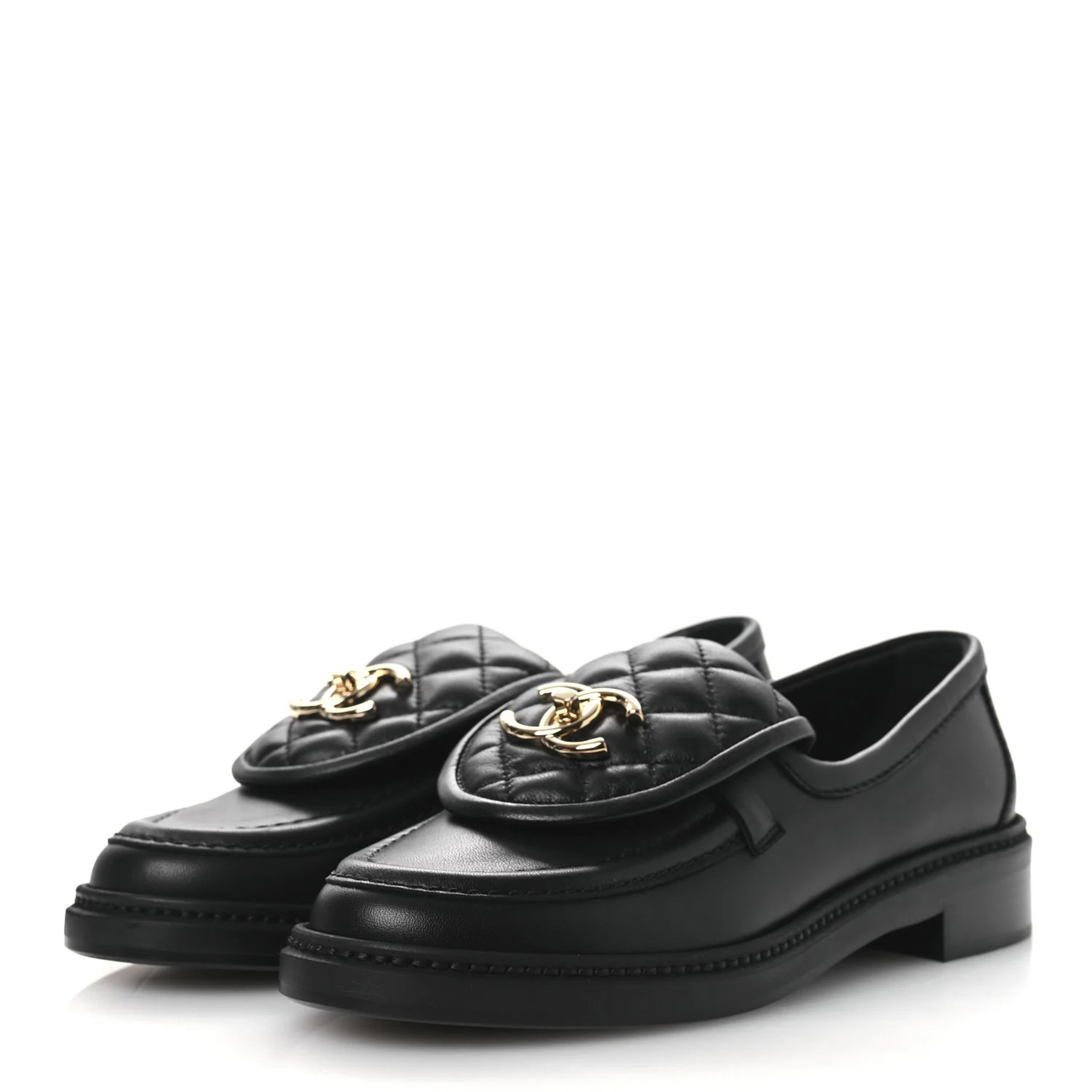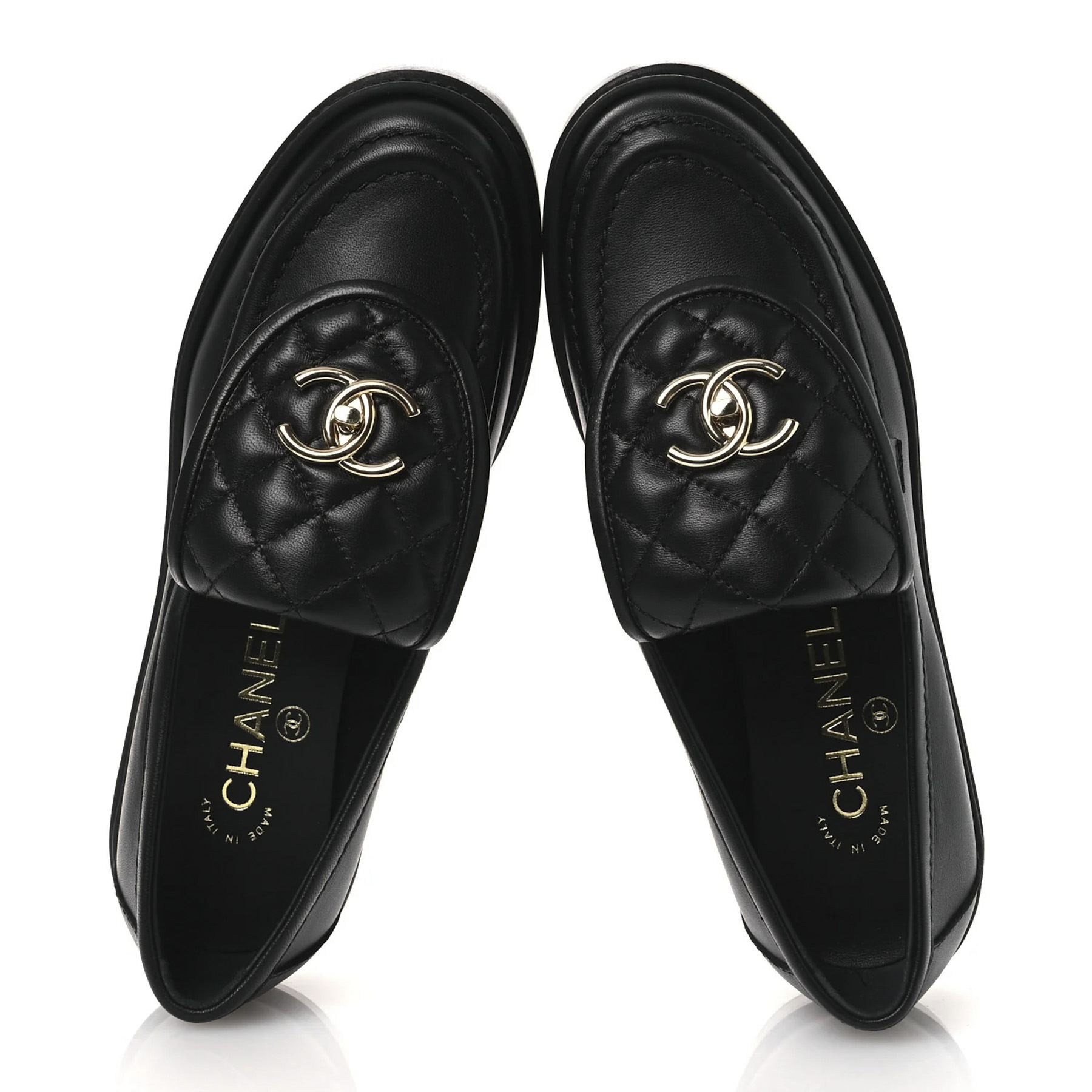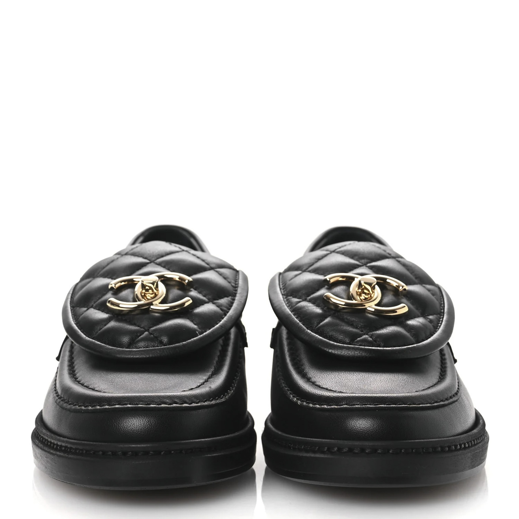 - Style: 24C Black Lambskin Quilted CC Turnlock Flap Loafers