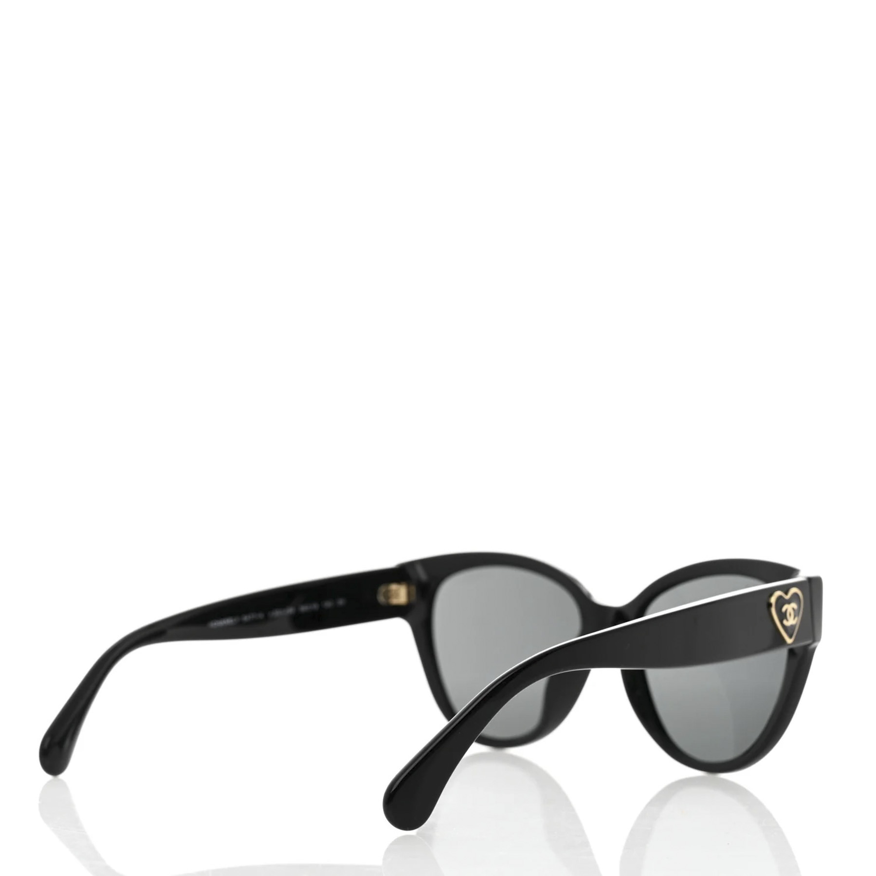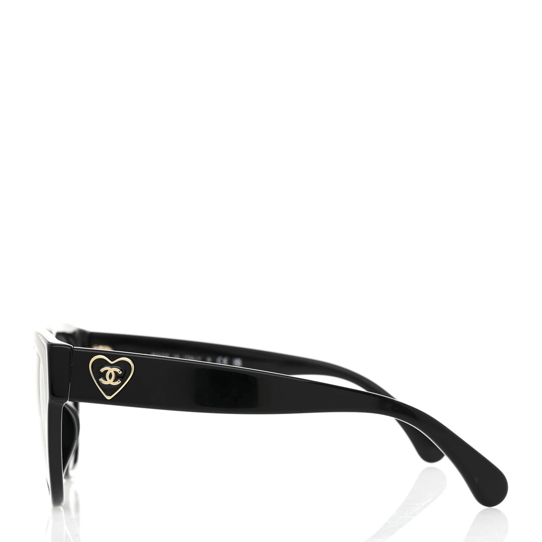 Chanel 5477-A Black Acetate Gray Gradient Enamel Heart Butterfly Sunglasses