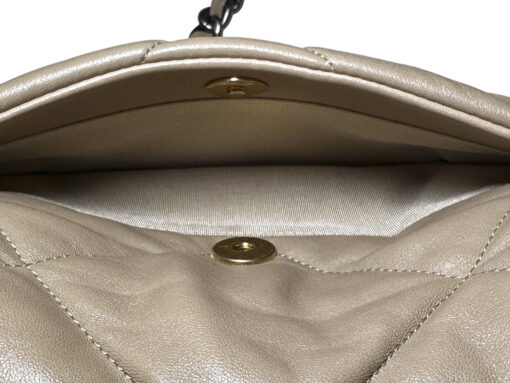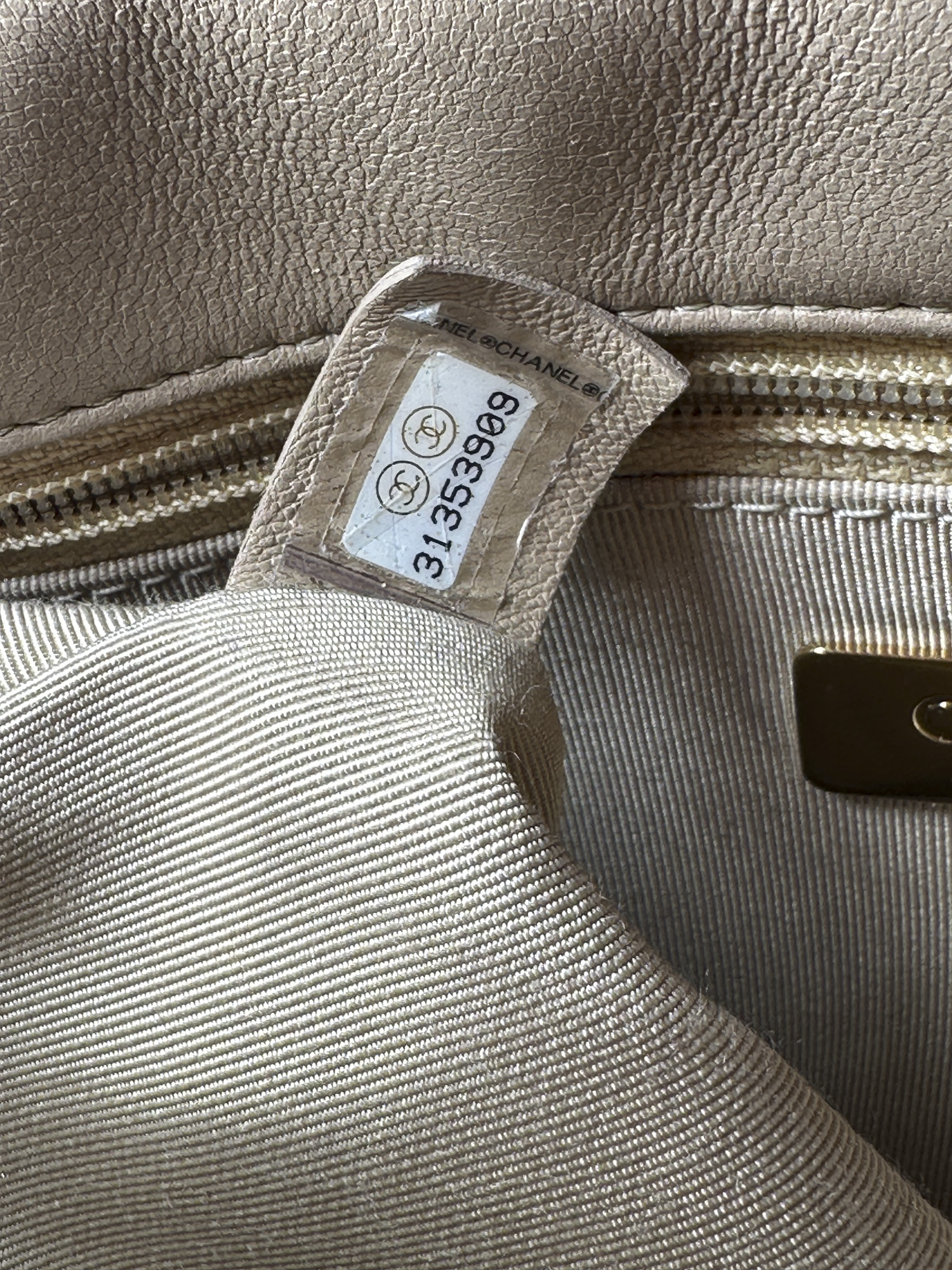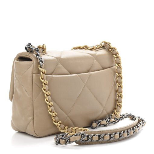 - Style: Beige Lambskin Quilted Medium Chanel 19 Flap Crossbody Shoulder Bag