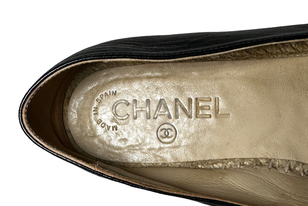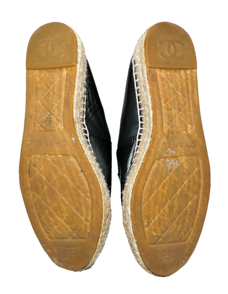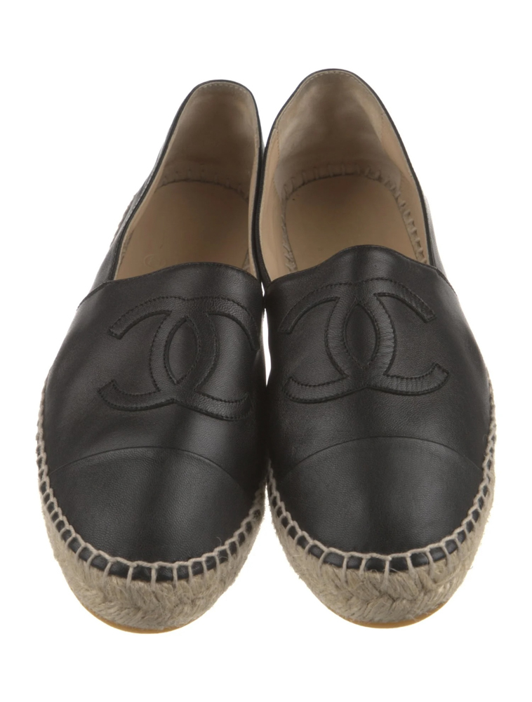- Style: Black Lambskin Leather Interlocking CC Logo Cap Toe Espadrilles