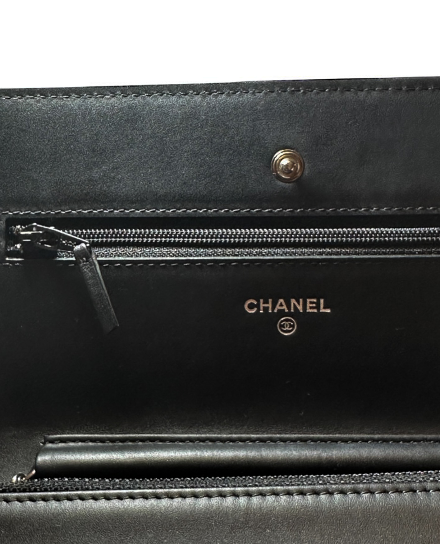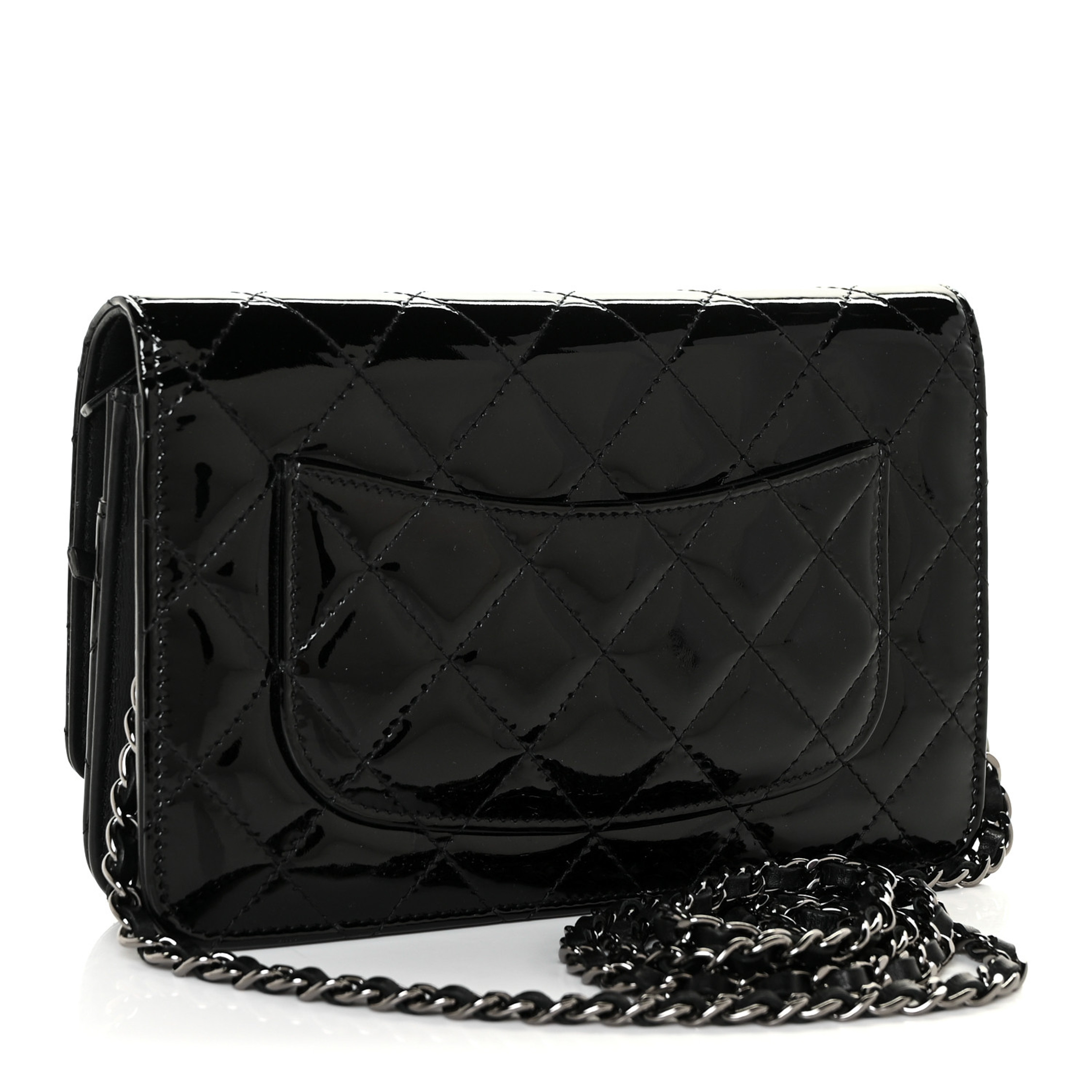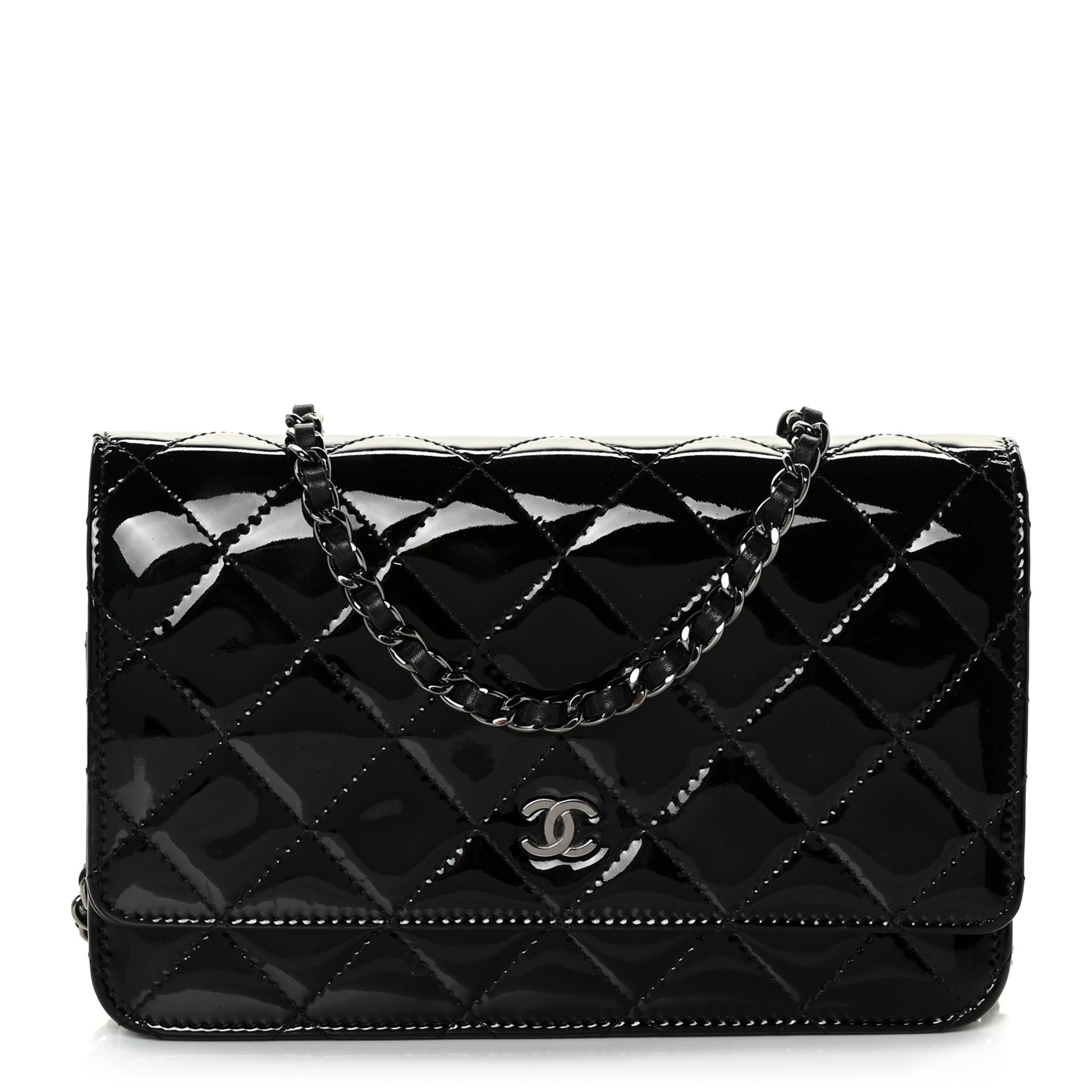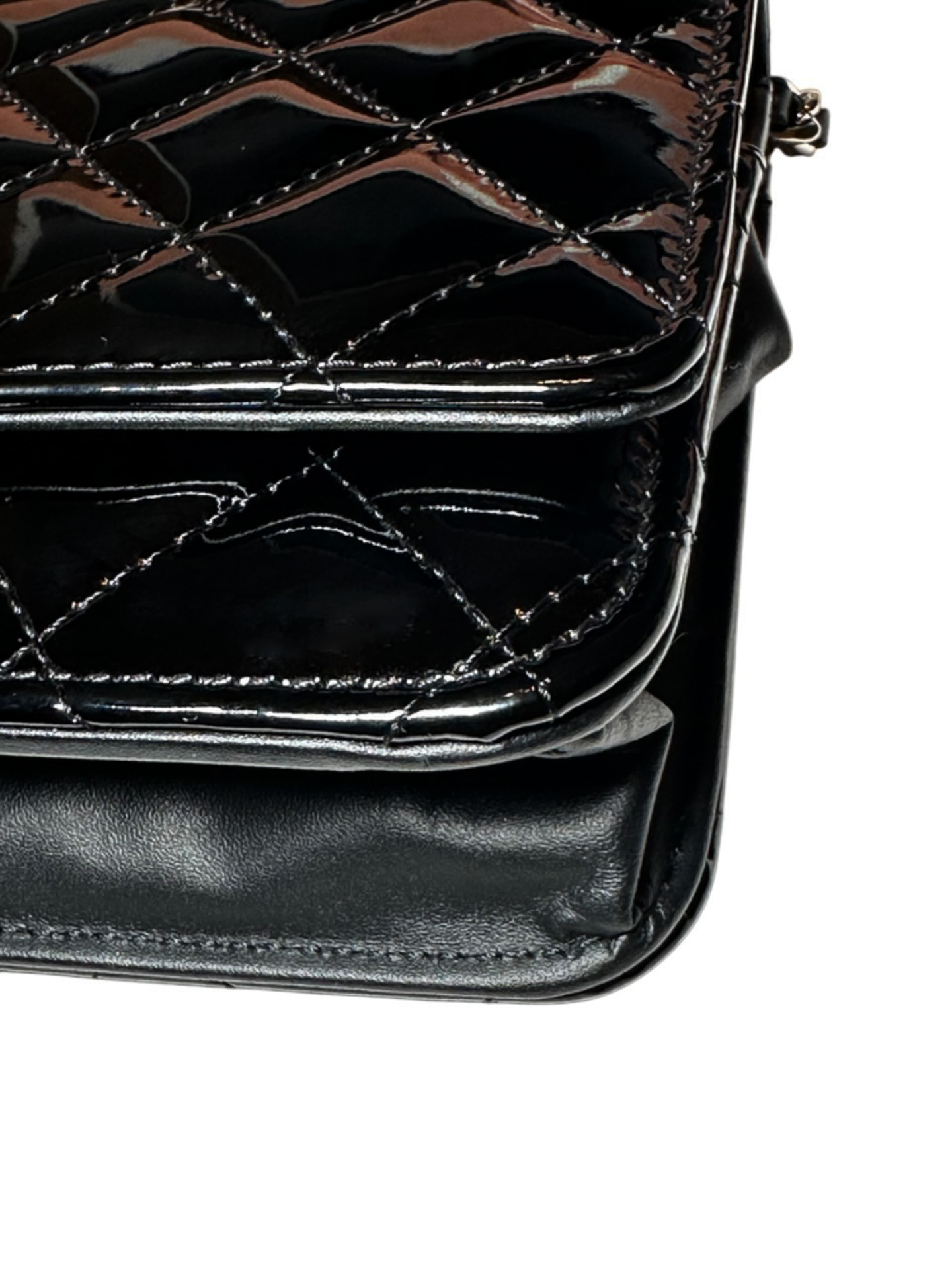 CHANEL Black Patent Quilted WOC Wallet on Chain Flap Crossbody Purse Bag SHW