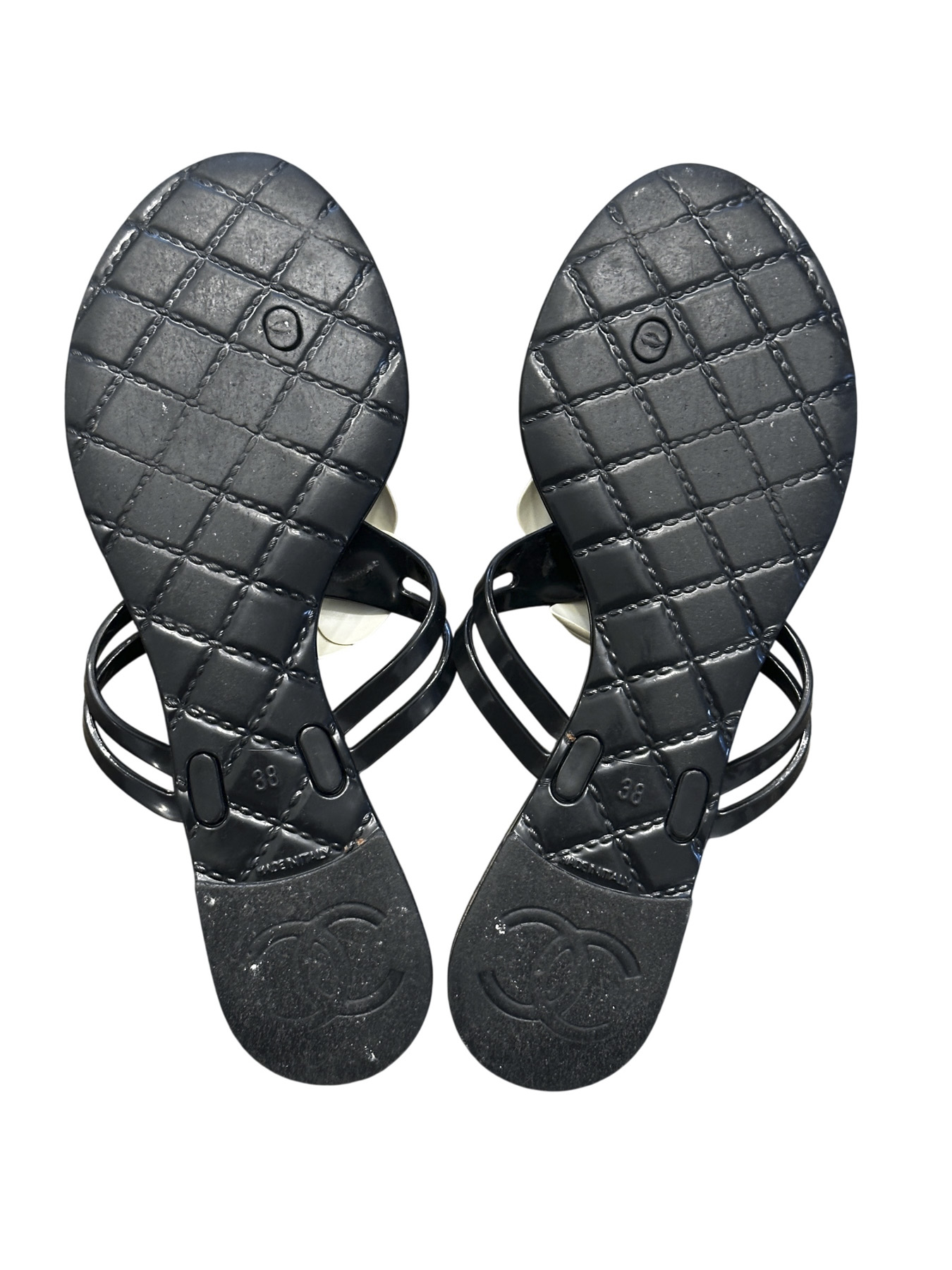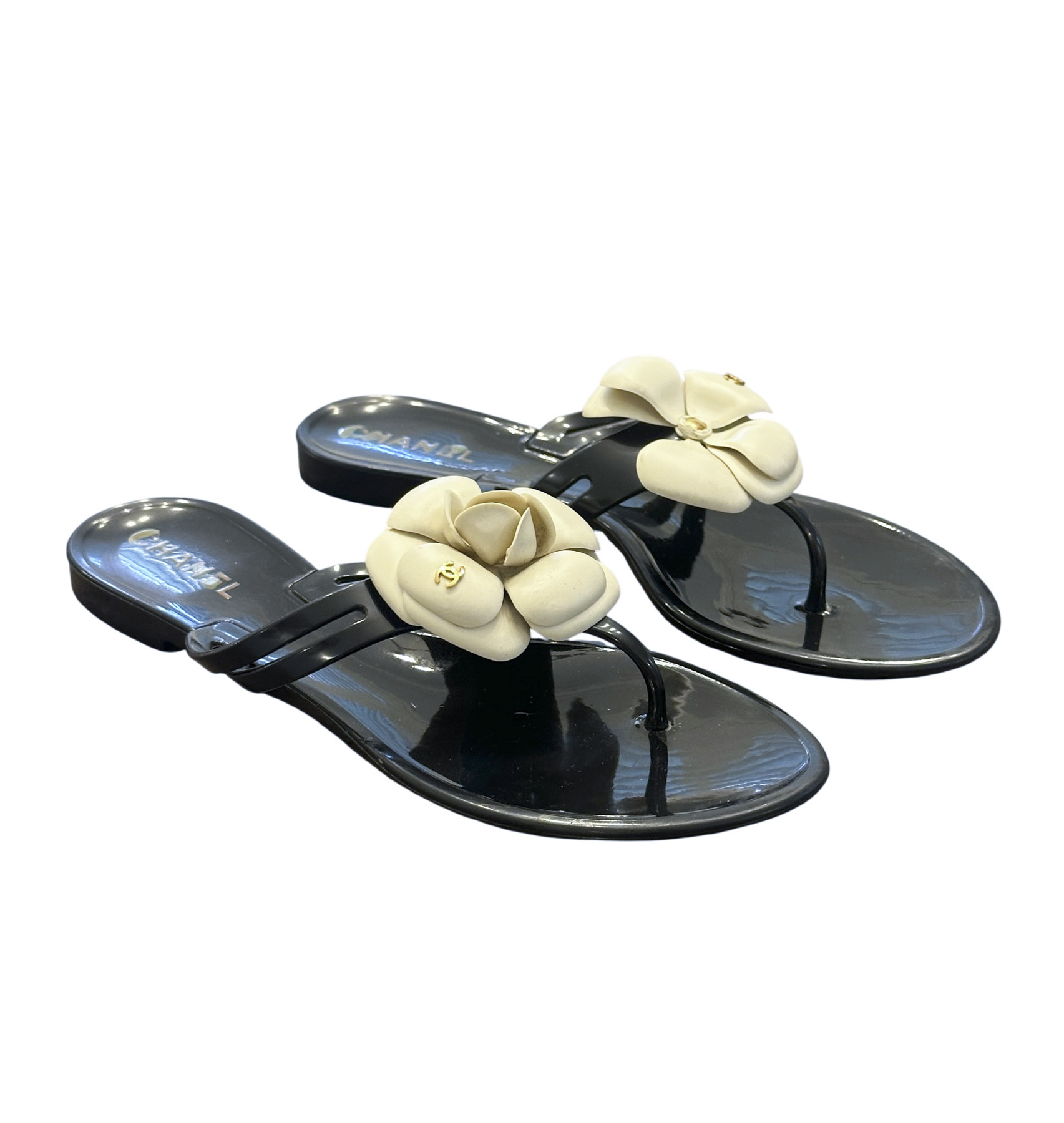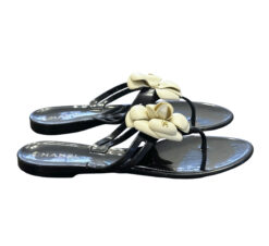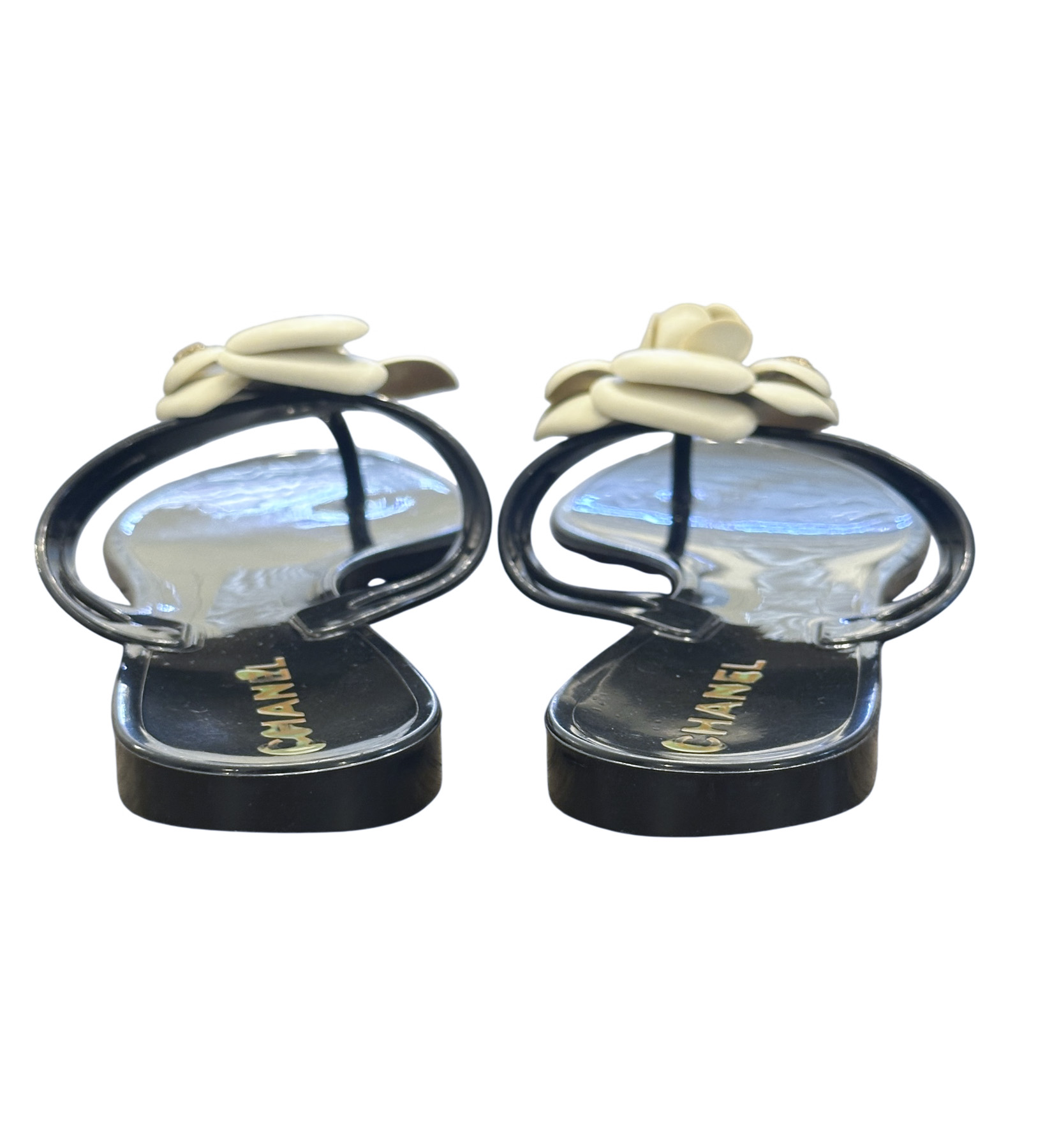 - Style: Camellia Flower Black & White Thong PVC Jelly Sandals