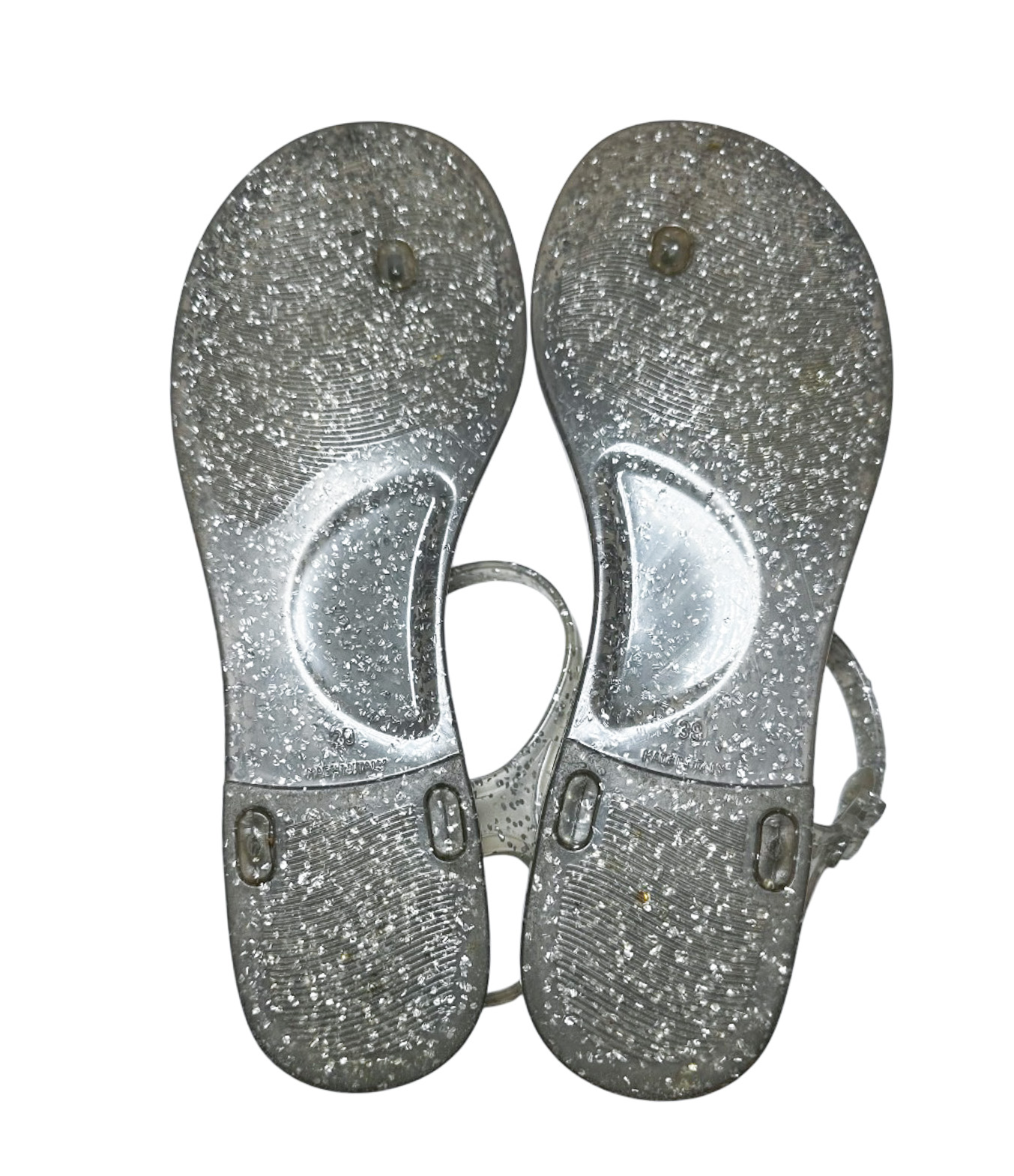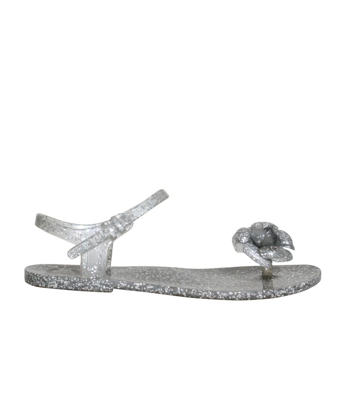 • Style: Camellia Flower Silver Glitter Thong Ankle Strap Jelly Sandals