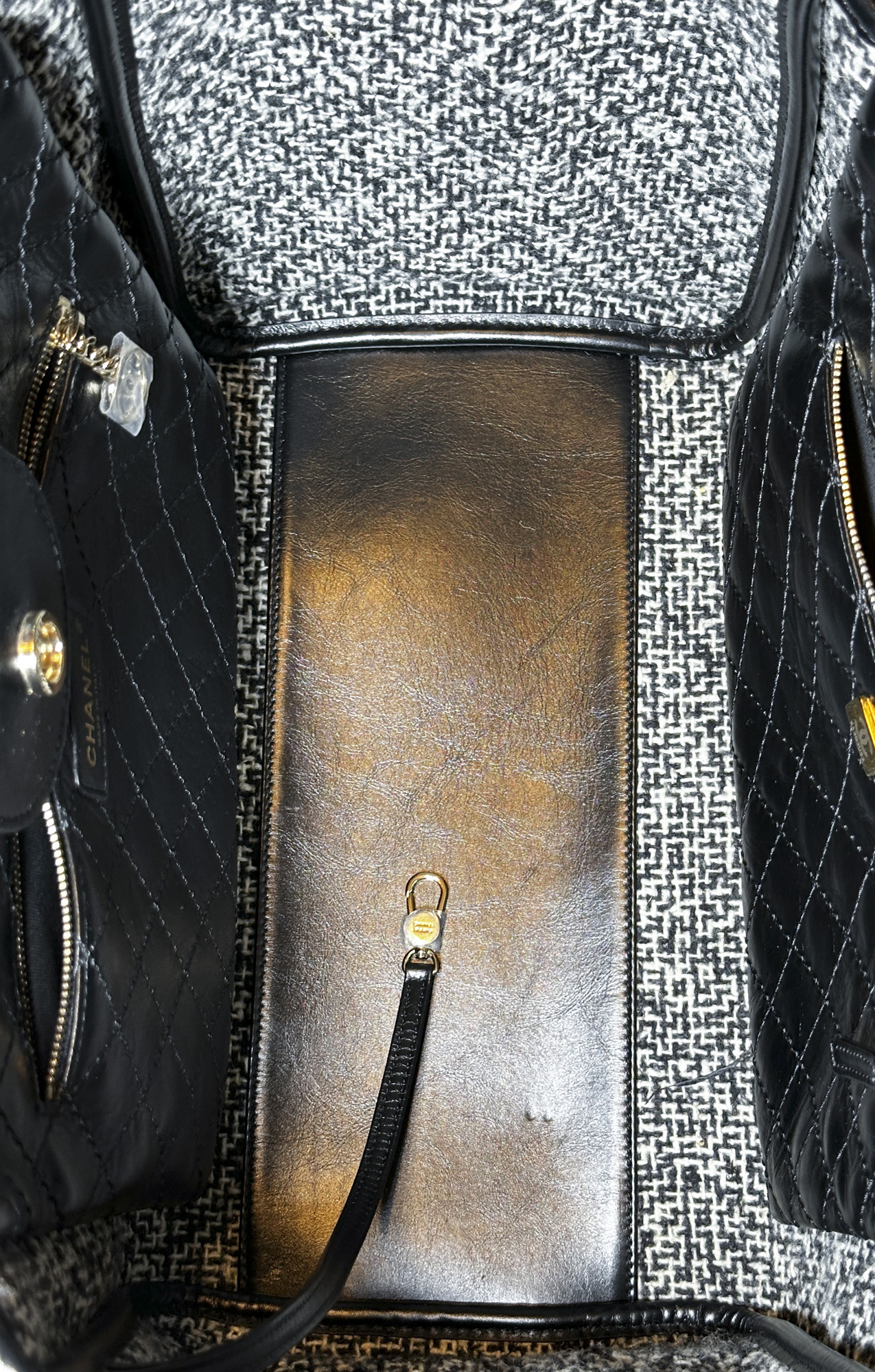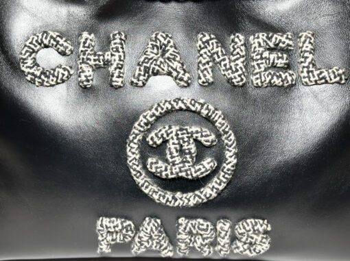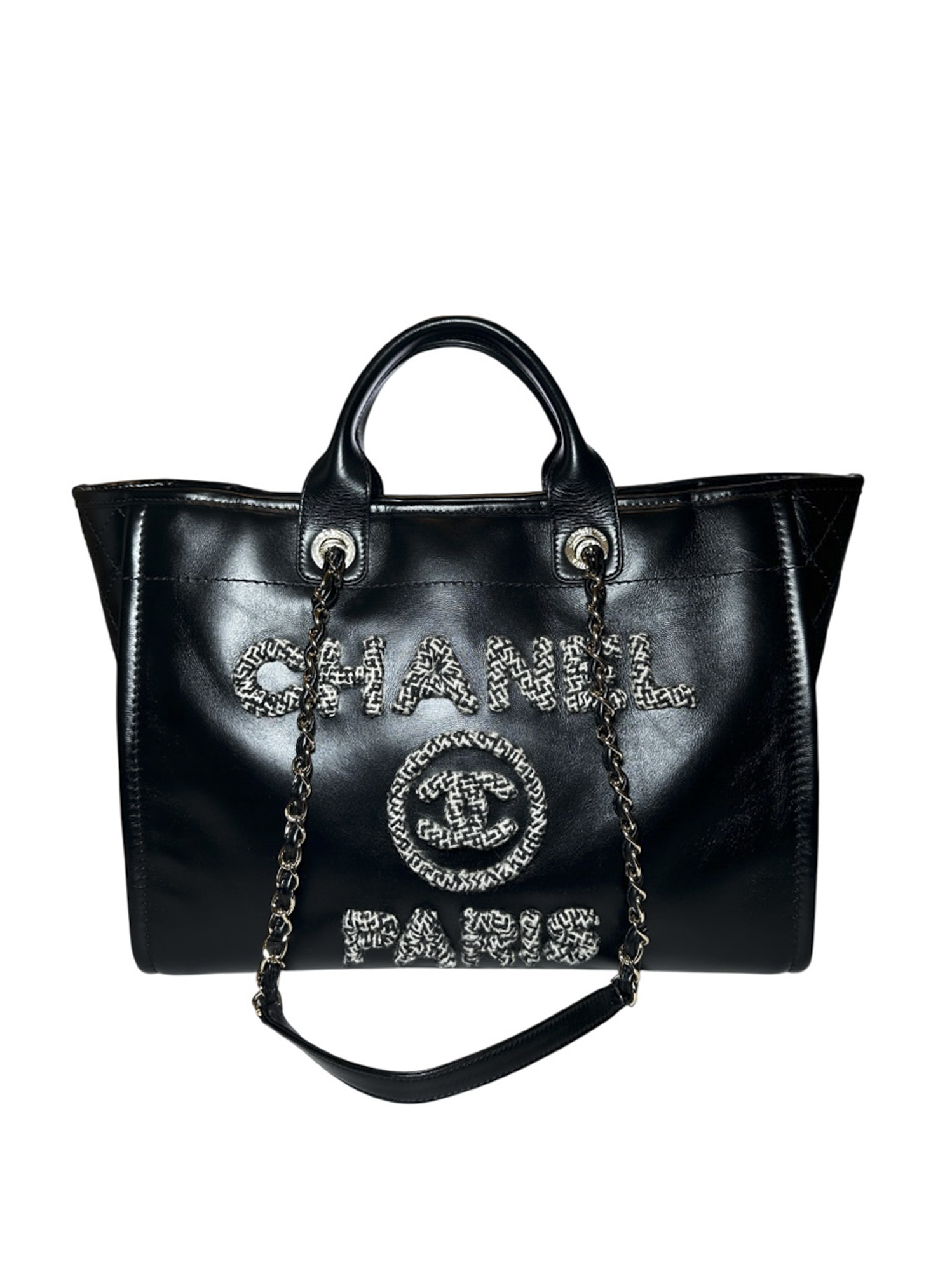 - Style: 2023 Deauville Black Calfskin Tweed Logo Large Shopping Tote Bag SHW