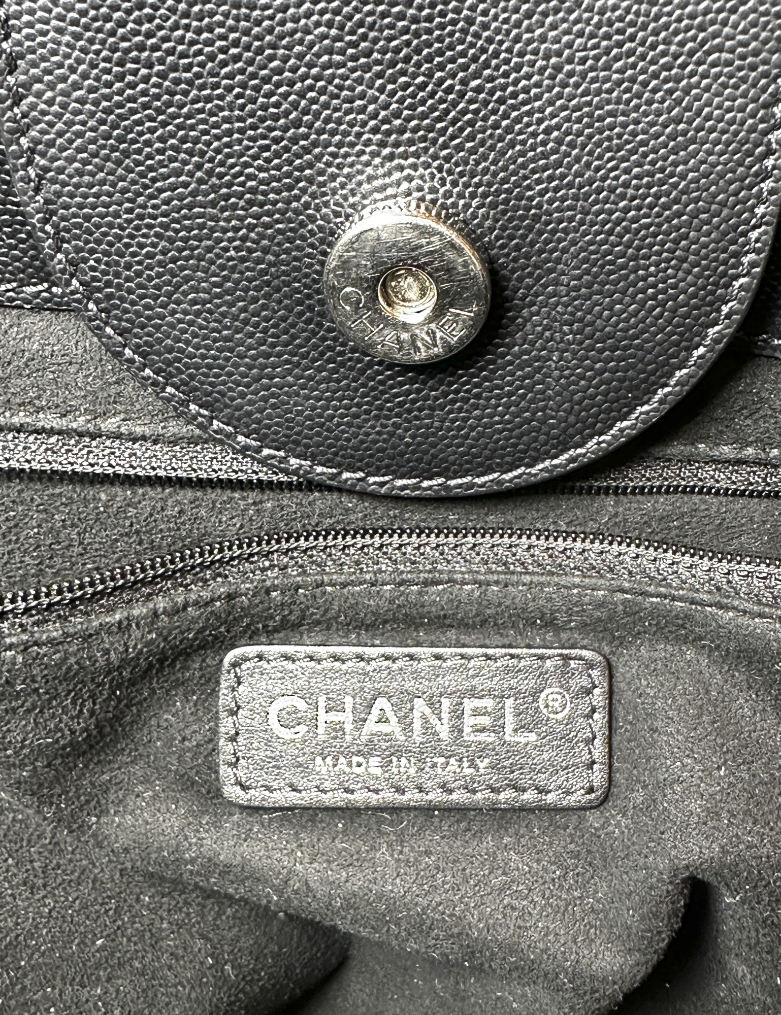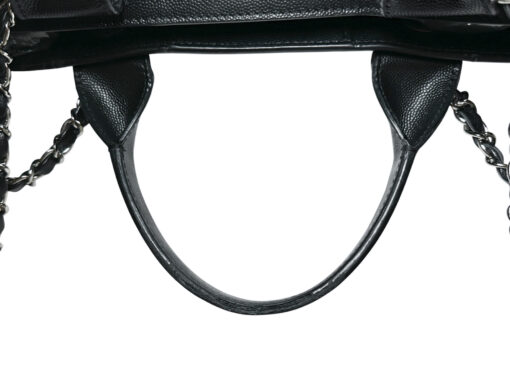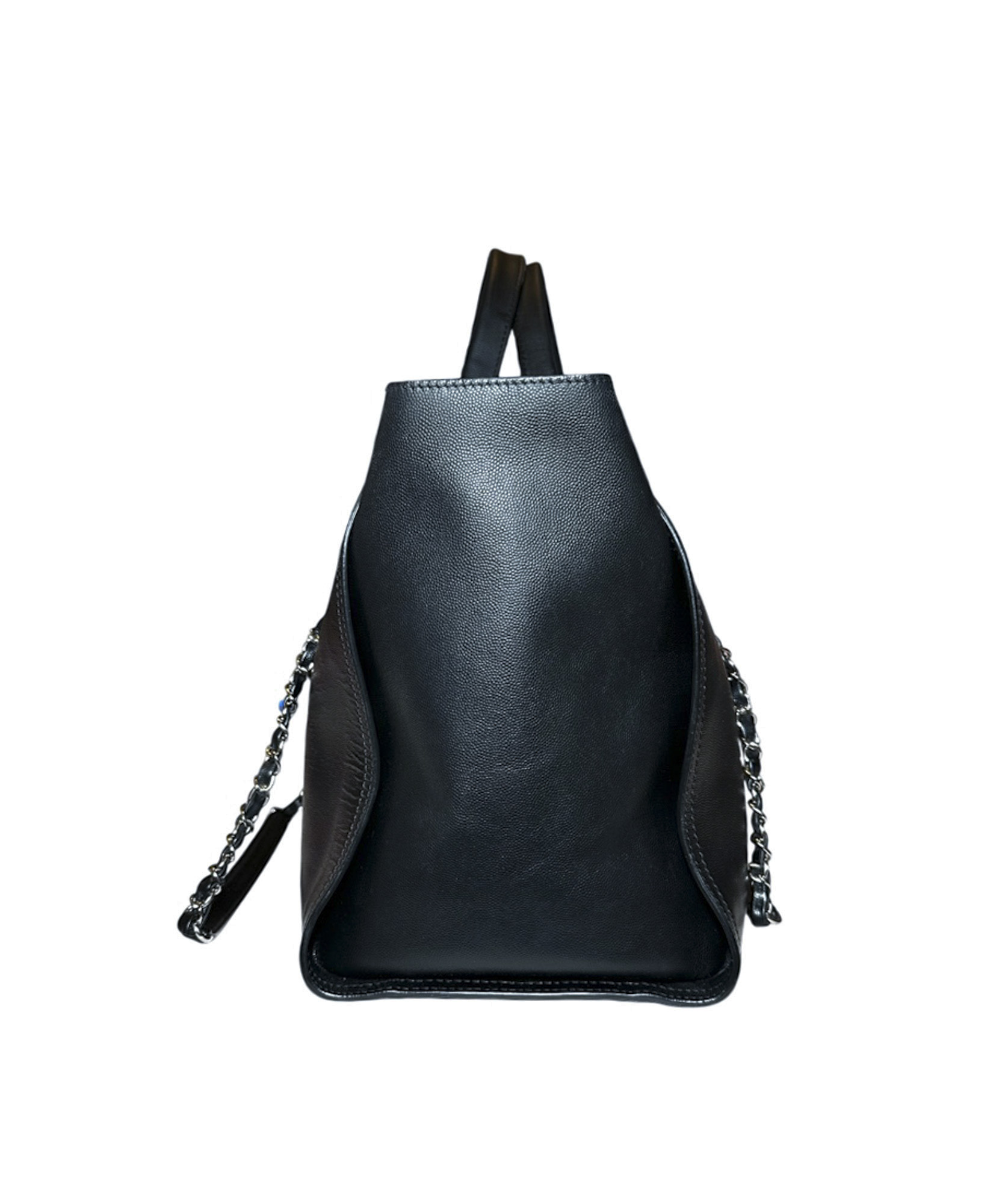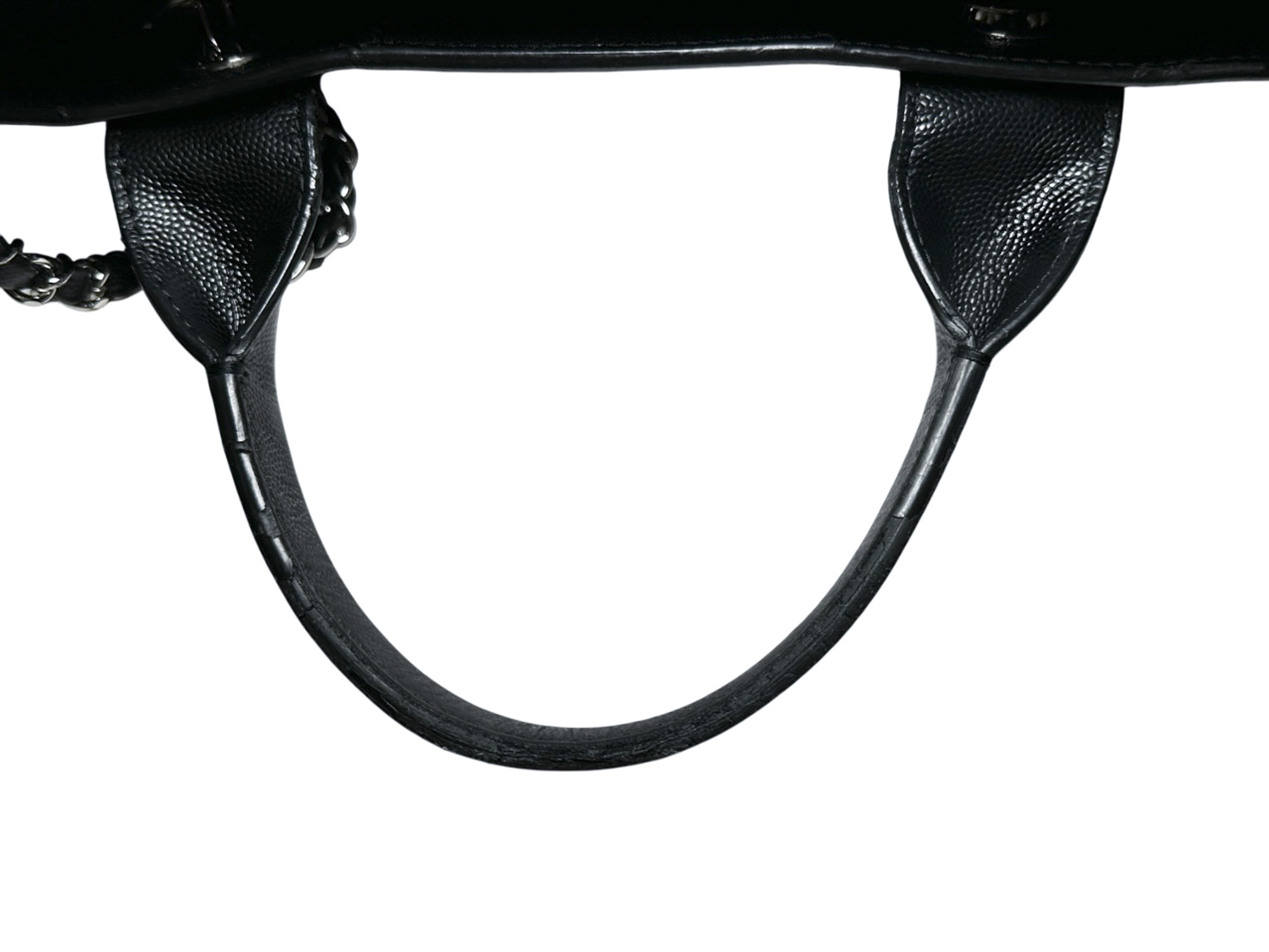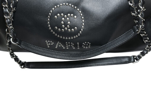 CHANEL Deauville Black Caviar Leather Studded Logo Large Shopping Tote Bag SHW