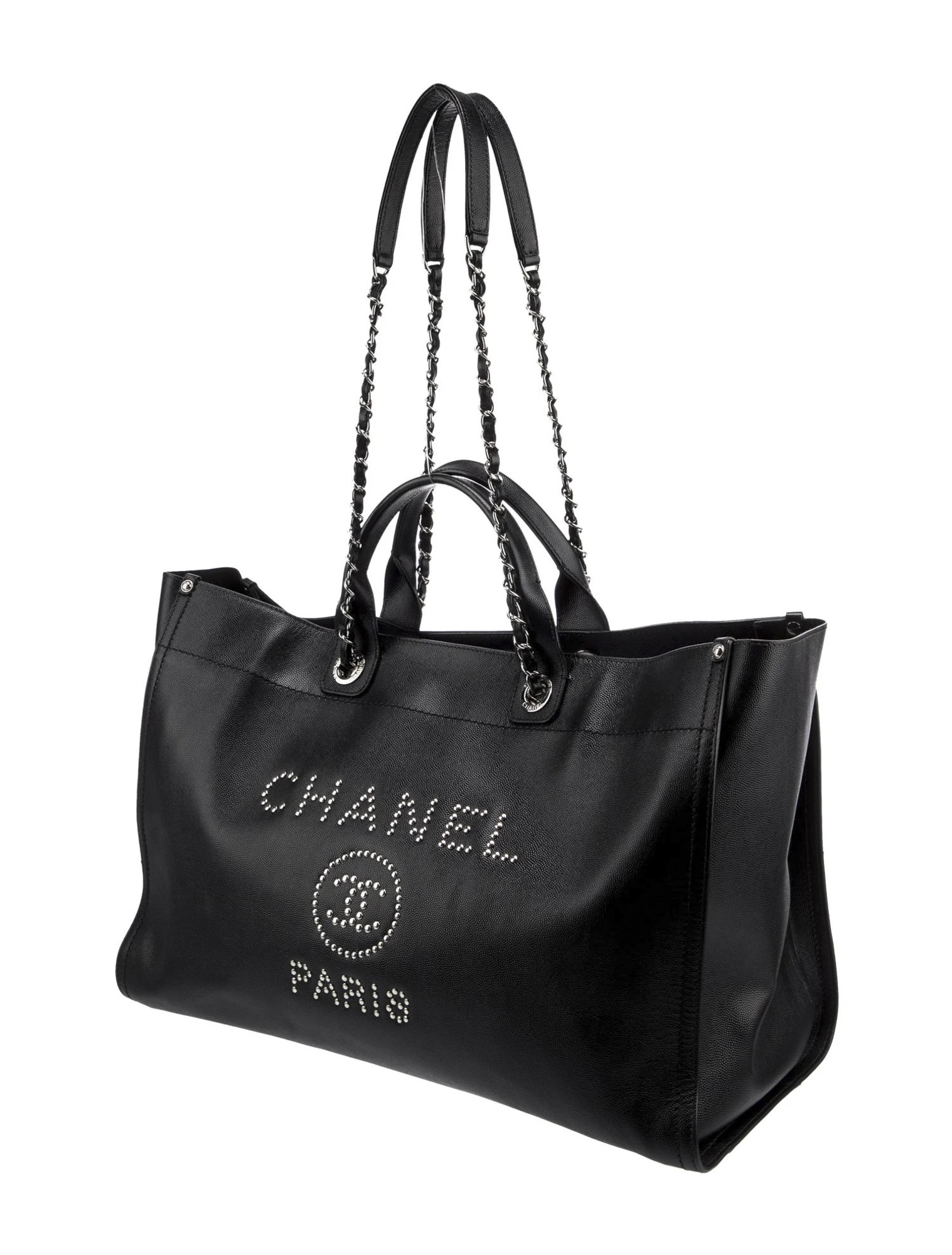 SKU: BIN - 651645645554122322-SR-1-1 Categories: CHANEL, Handbags Tags: BAG, BLACK, CALFSKIN, CAVIAR, CC, CHAIN, CHANEL, DEAUVILLE, HANDBAG, LARGE, LOGO, STUDDED, TOTE Brand: Chanel