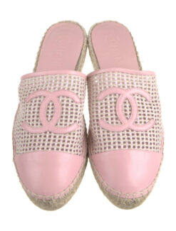 - Style: Mesh Lambskin Interlocking CC Logo Cap Toe Espadille Mules Flats
