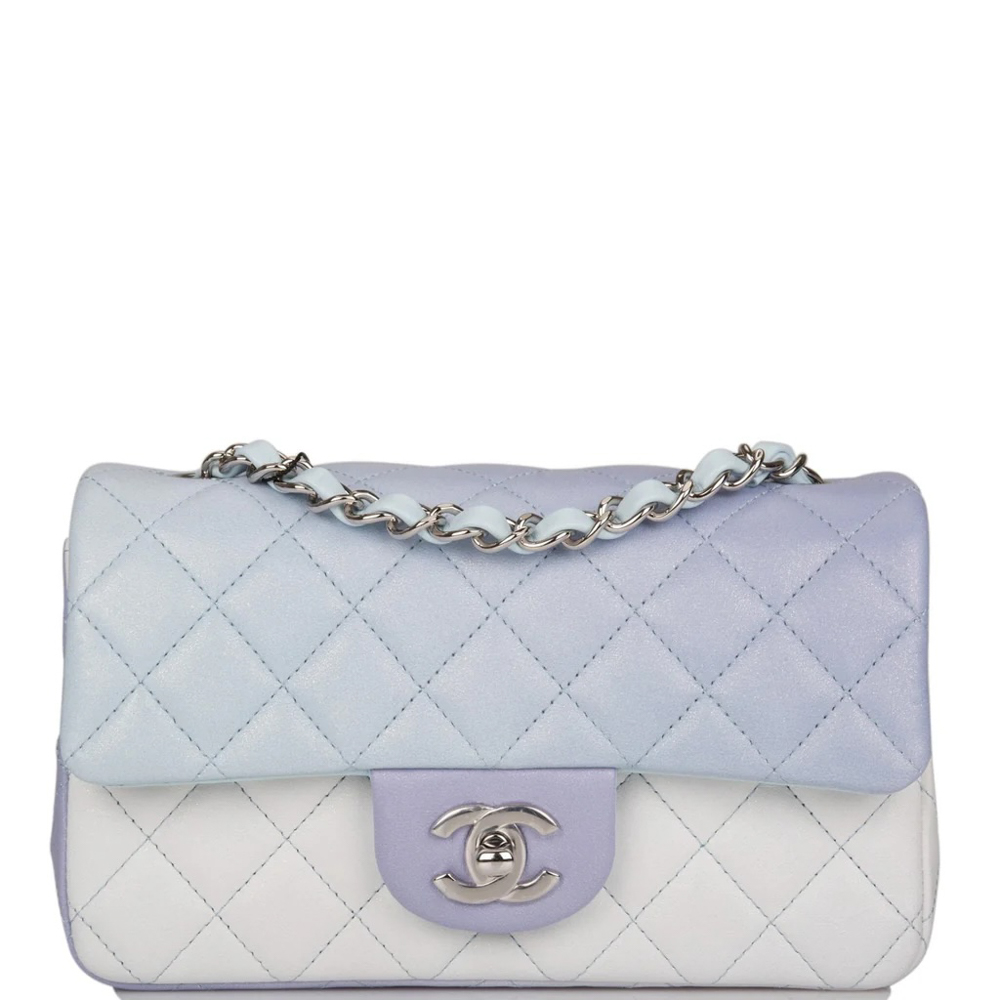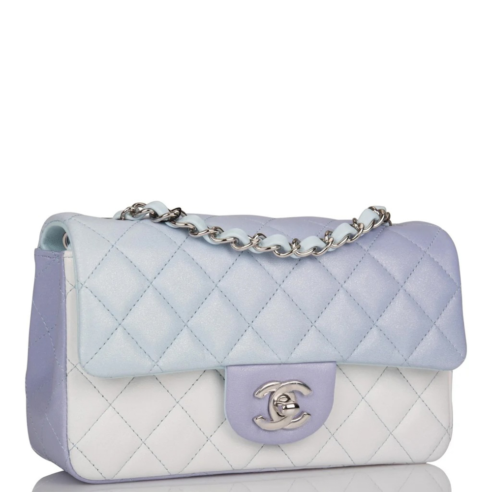 Chanel Mini Rectangular Flap Bag Blue Metallic Ombre Lambskin Silver Hardware