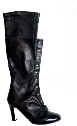 - Style: 2005 BLACK LEATHER PATENT CAP TOE CC REMOVABLE SPATS KNEE HIGH HEELS BOOTS