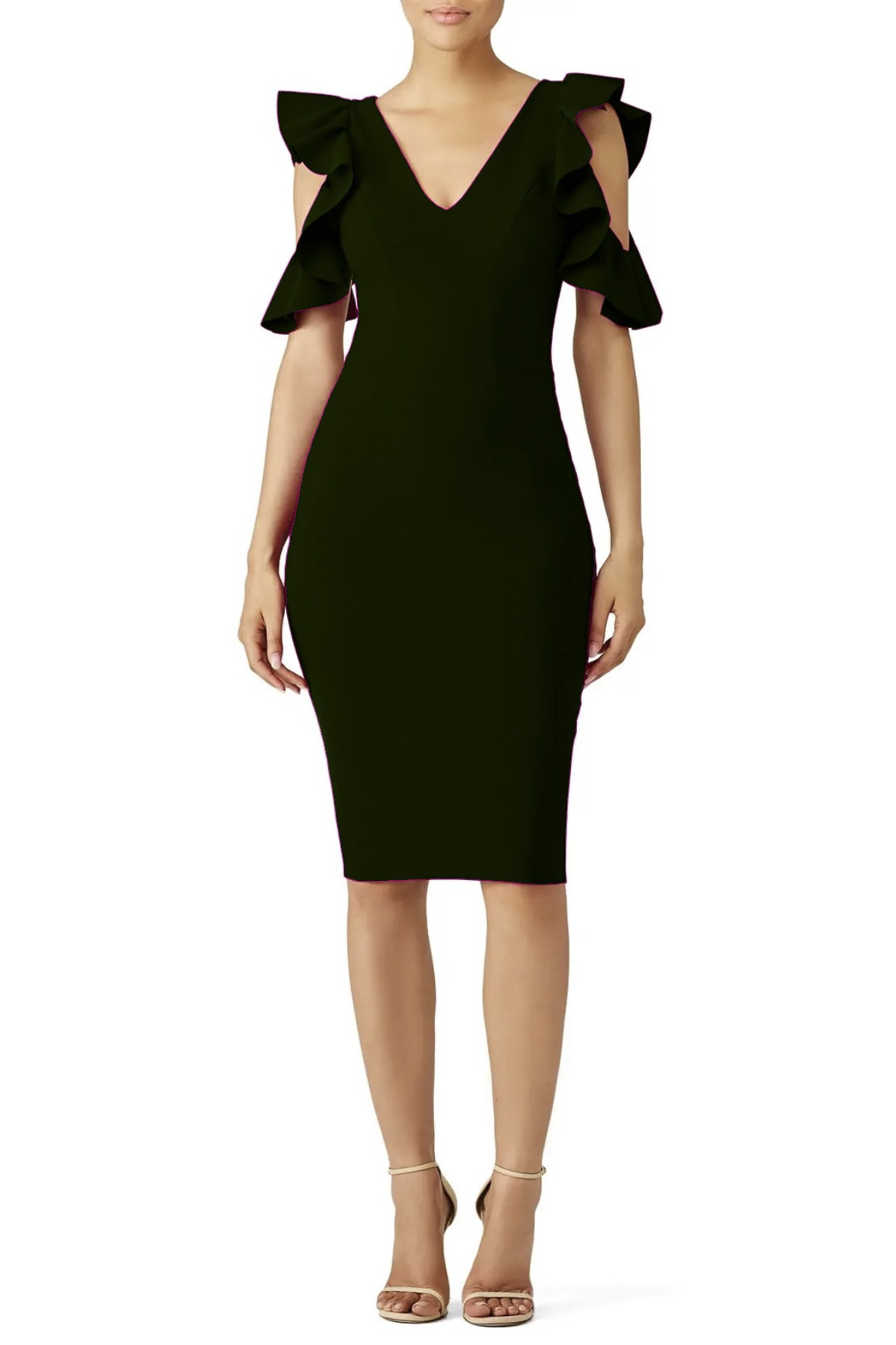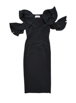 - Style: Beaufort Black V-Neck Ruffled Cold Shoulder Gown Dress