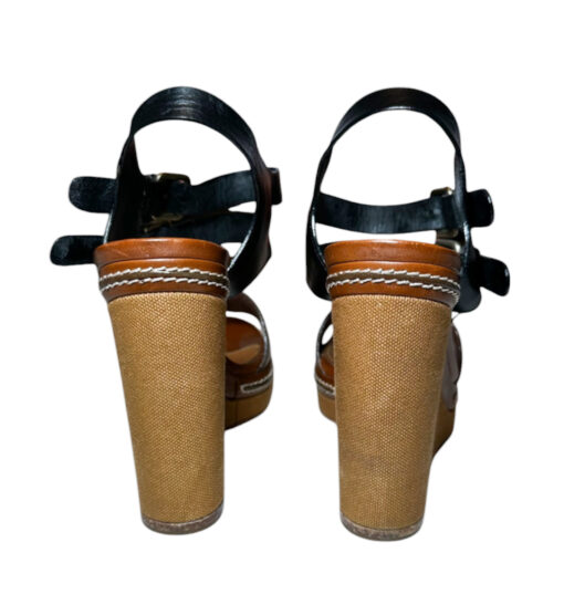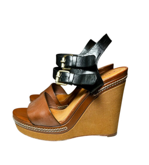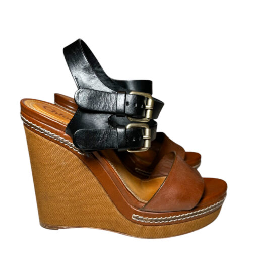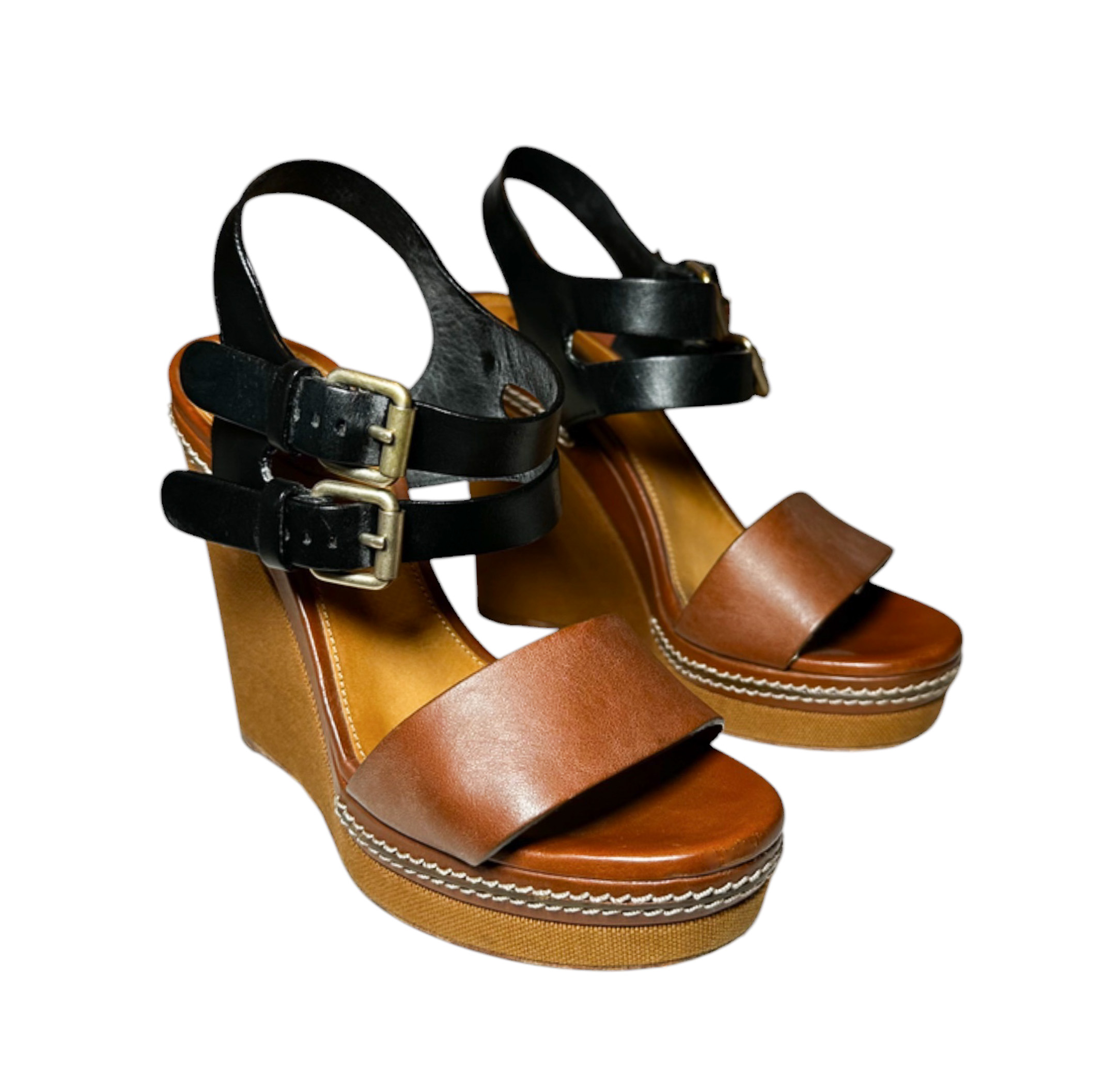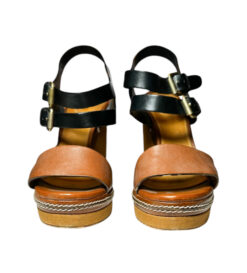 - Style: Black & Brown Leather Ankle Strap Platform Wedge Sandals