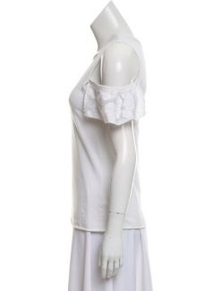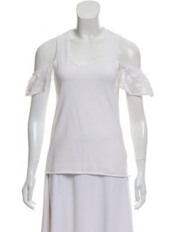 - Style: WHITE COTTON LACE SLEEVE COLD SHOULDER TOP