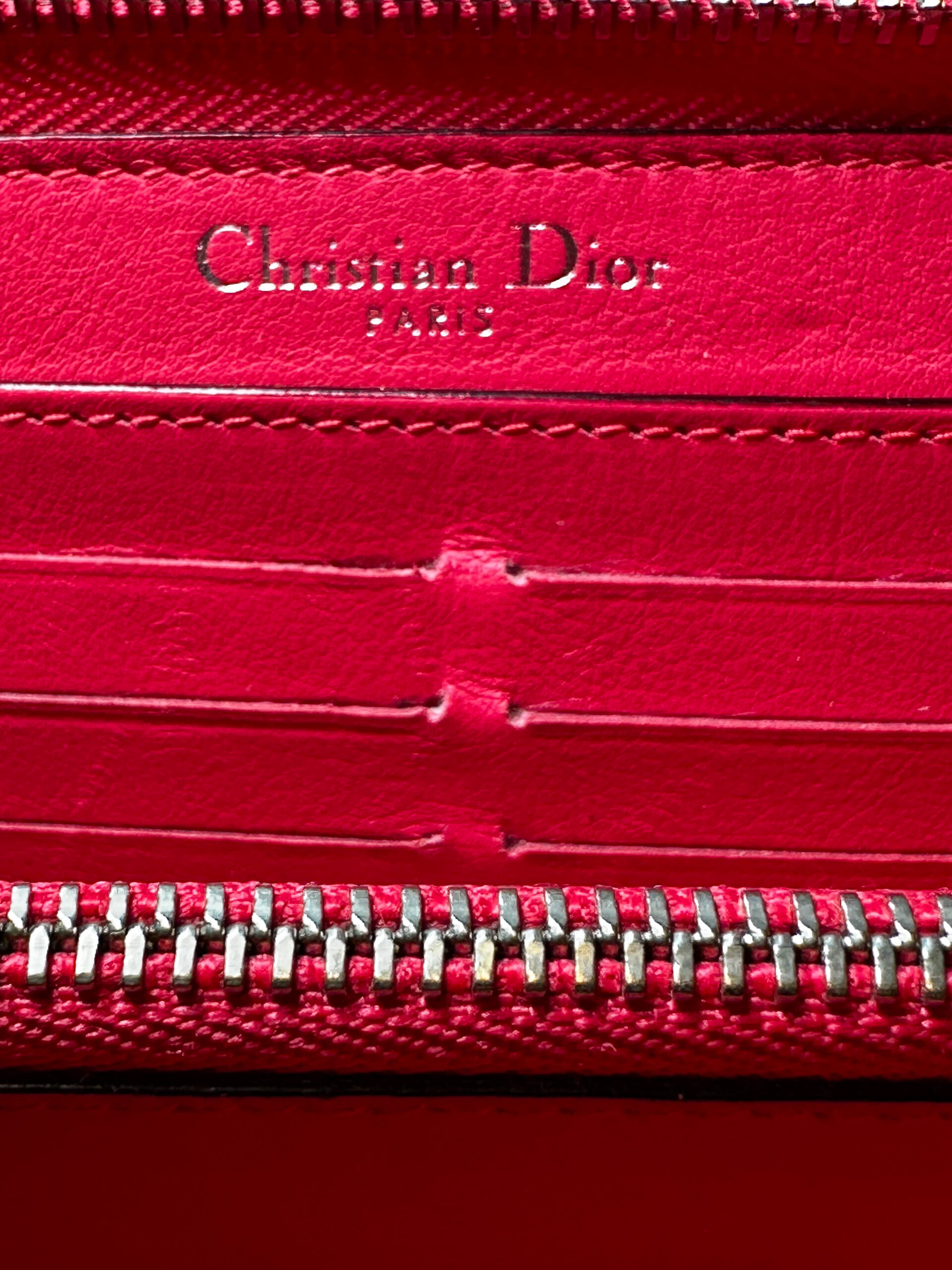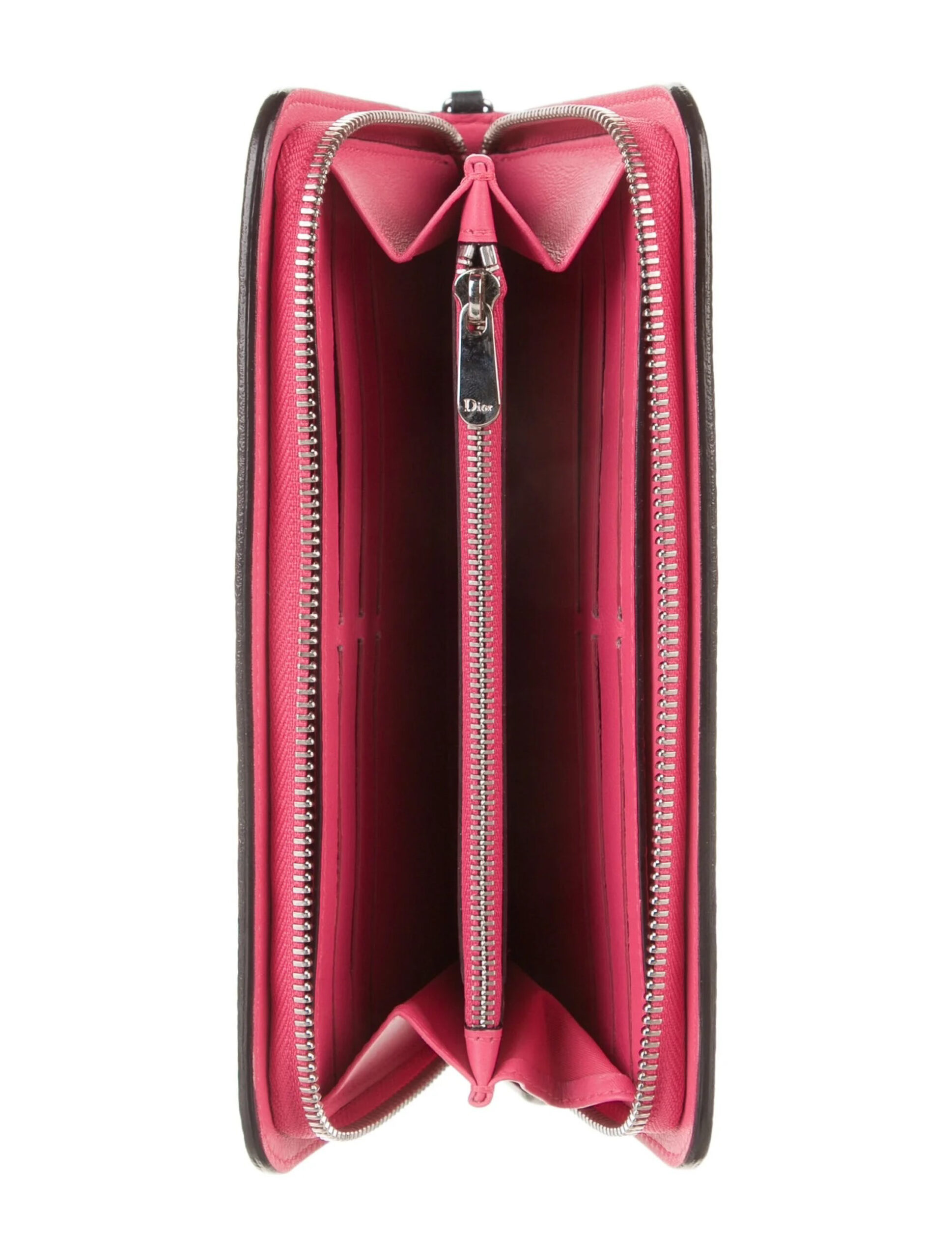 Christian Dior Bullcalf Diorissimo Voyageur Charm Zip Around Wallet Black Pink