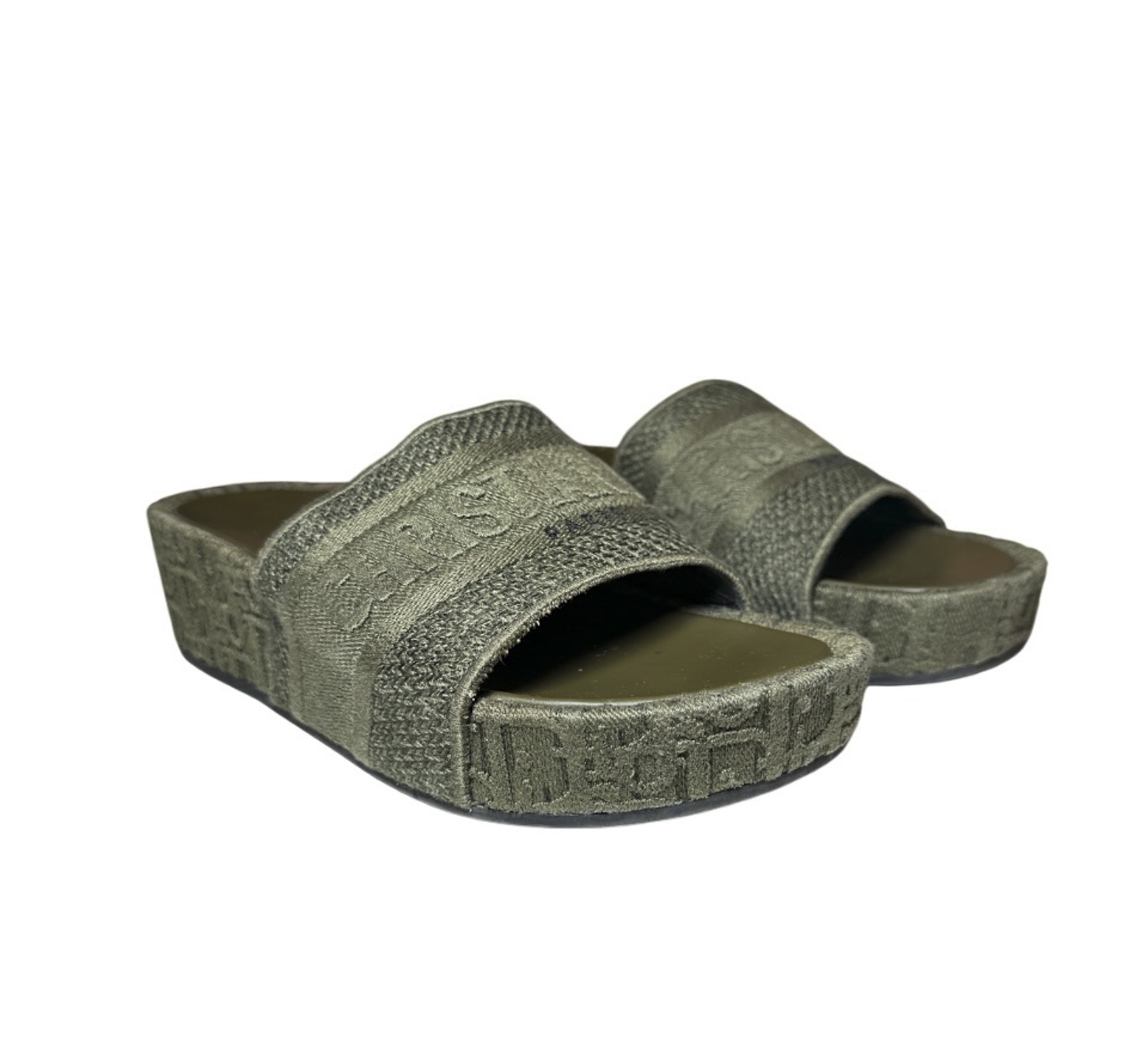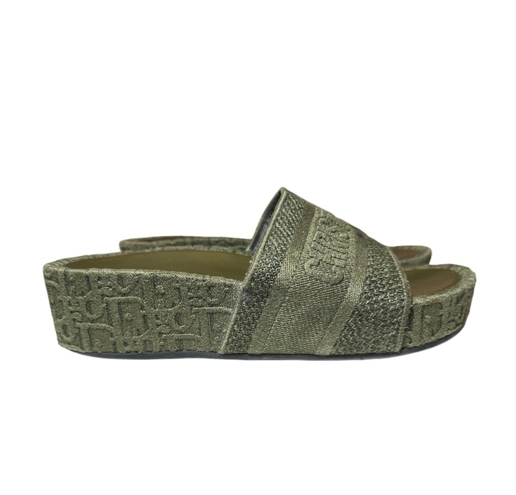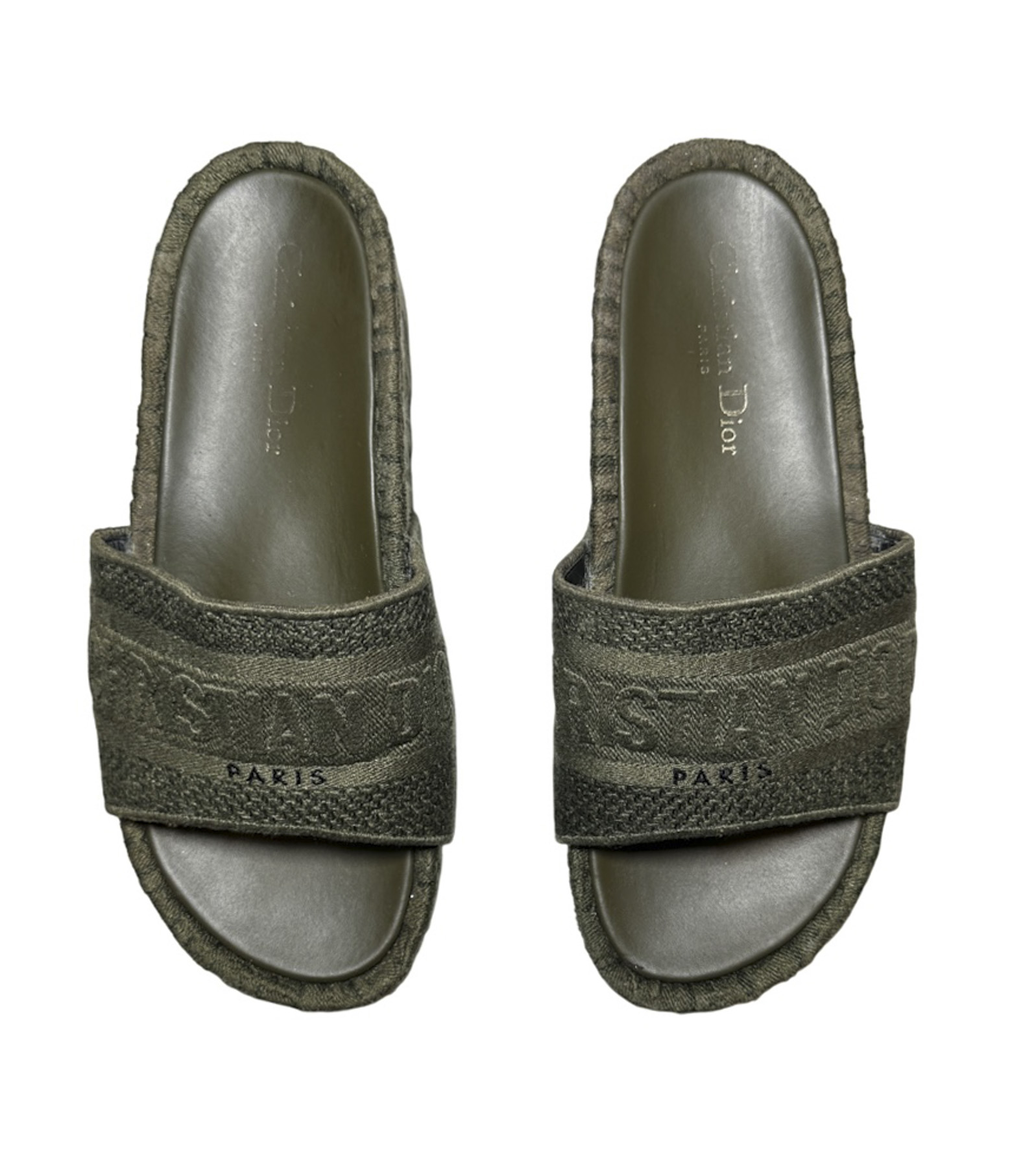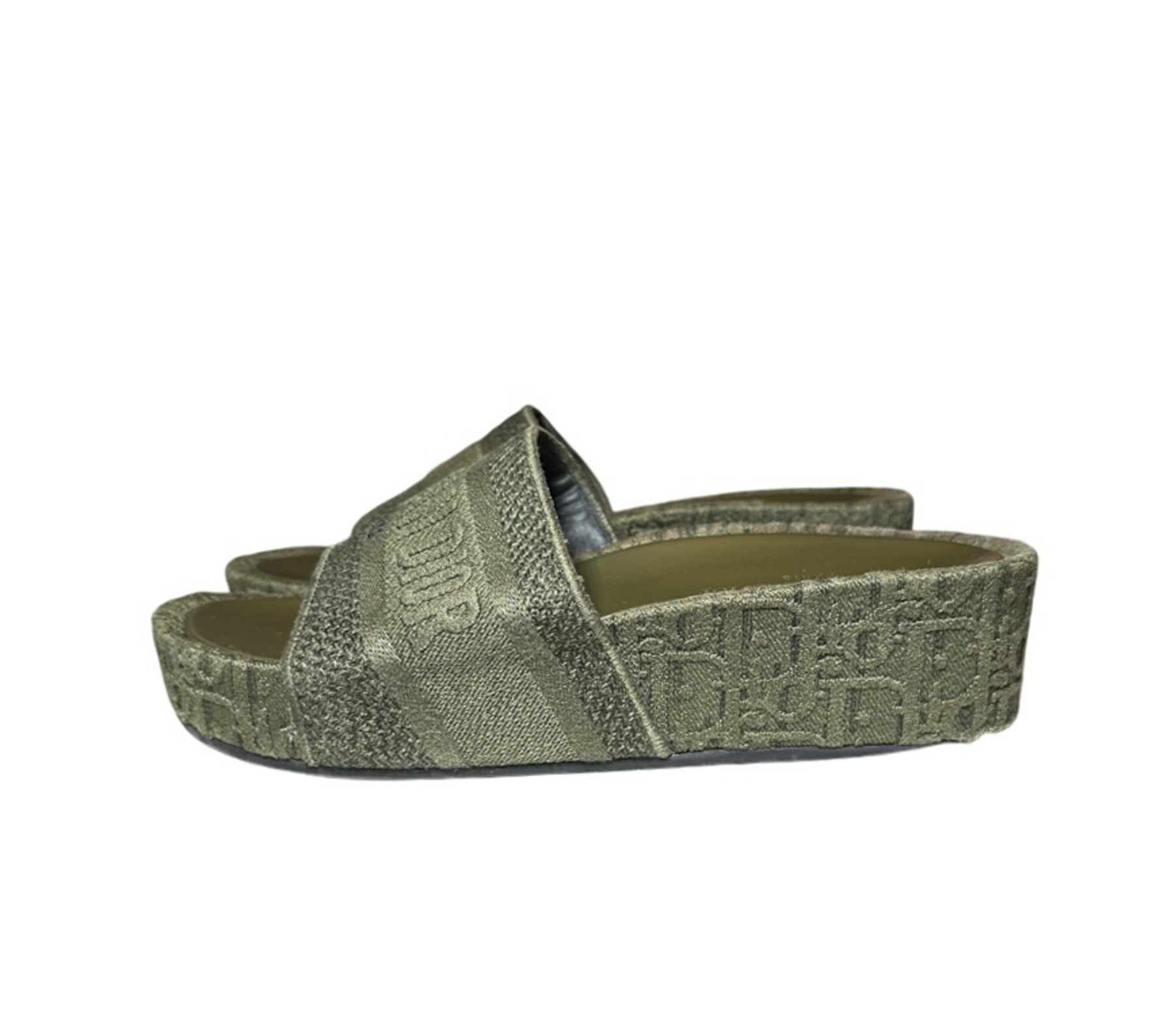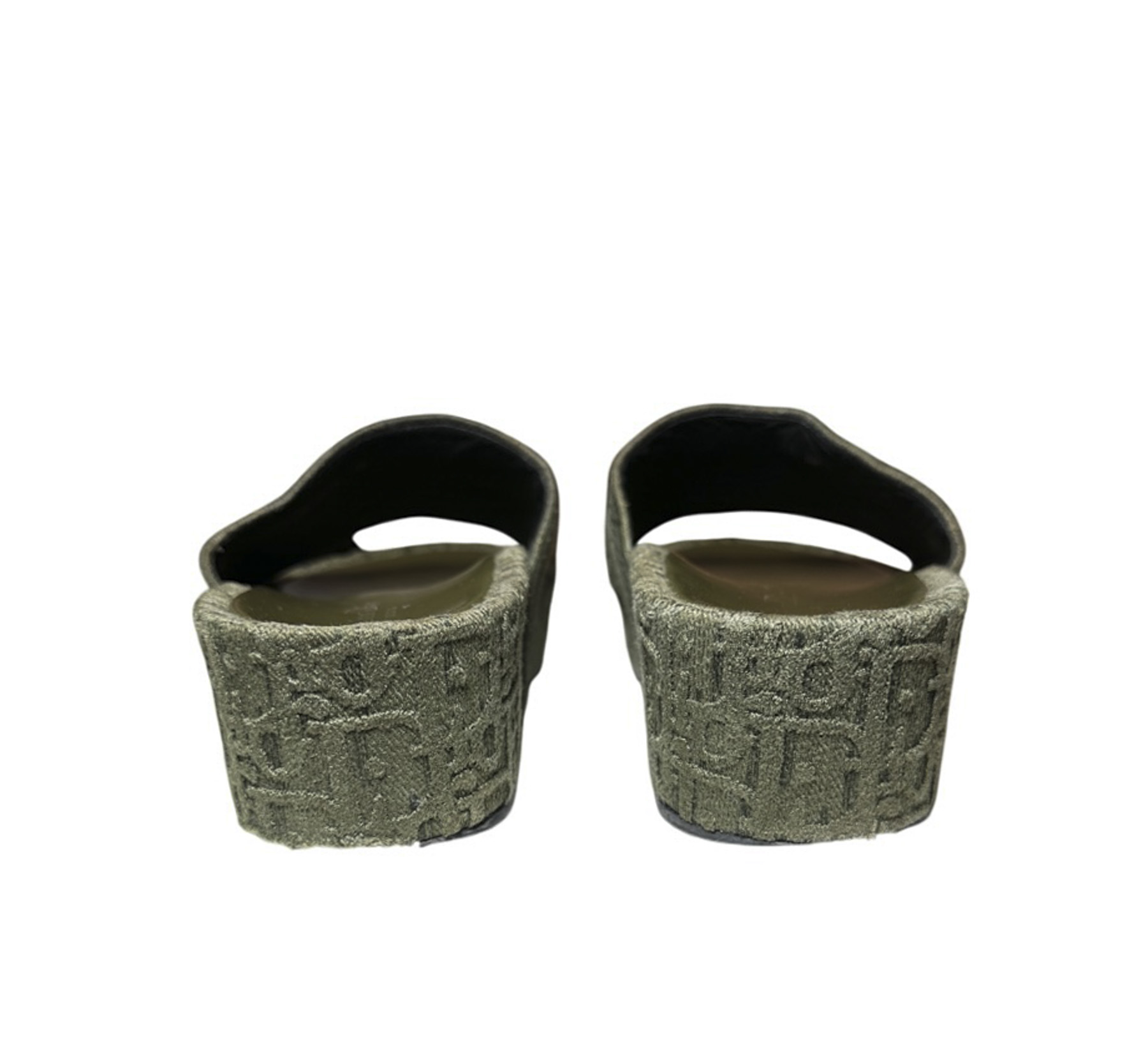 Christian Dior D-Way Oblique Denim Khaki Platform Slides Sandals Size 39
